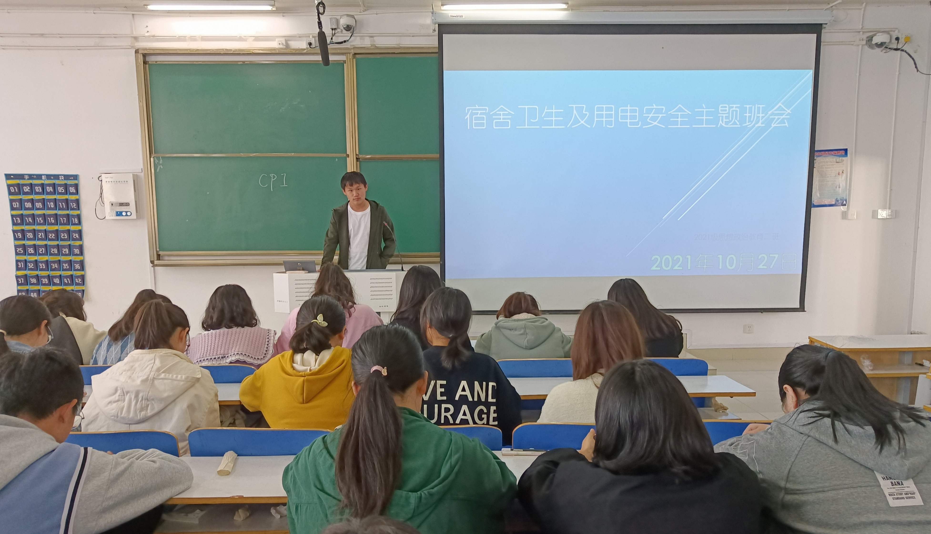 为了让同学们熟知寝室管理制度,提高安全用电意识,10月26日晚,永利集团官网2021级思想政治教育二班在社科楼514教室召开“寝室卫生及用电安全”主题班会。2021级思想政治教育二班全体成员参与此次班会。会议由团支书王婧欣和副班长任振豪主持。