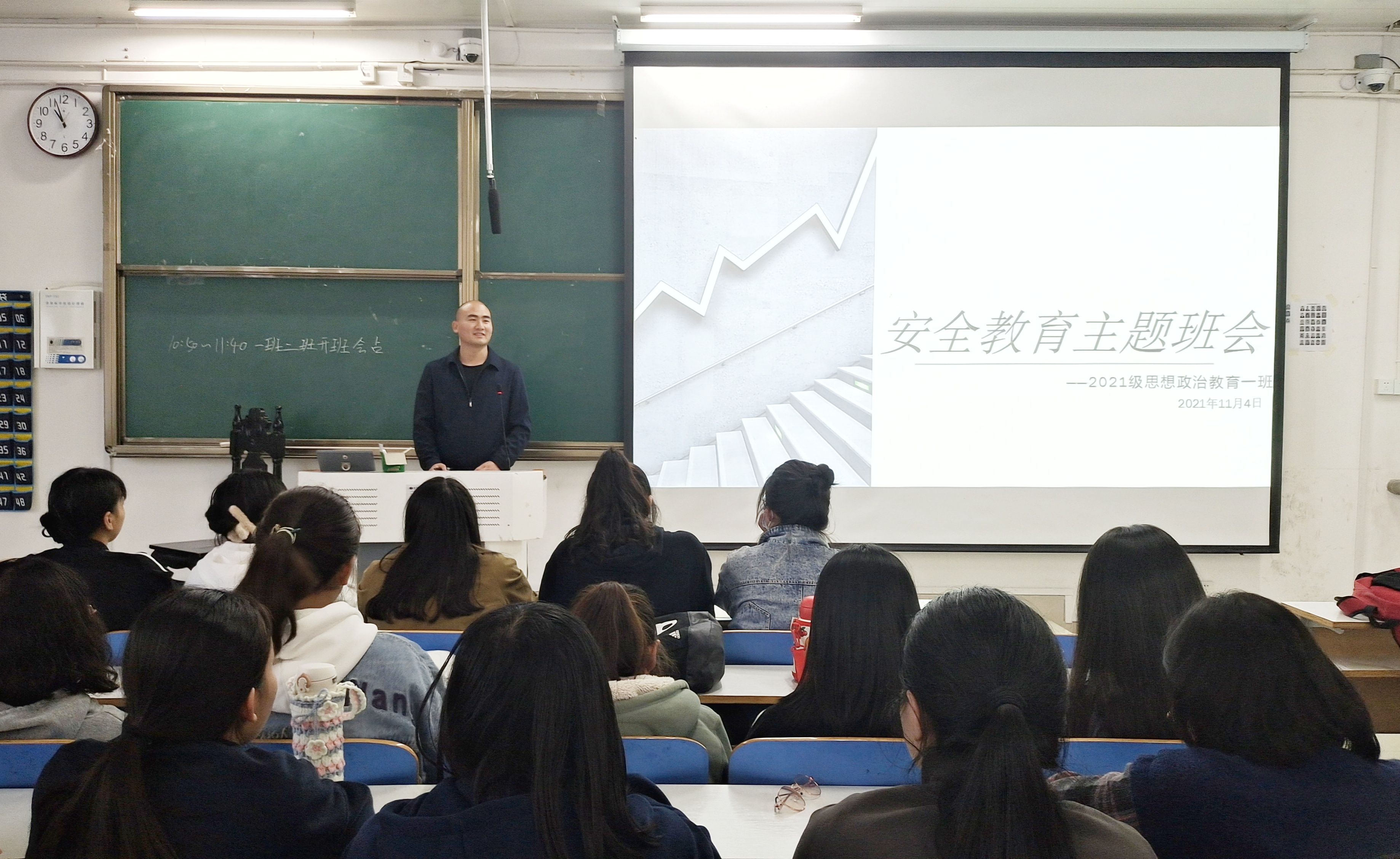 为进一步维护校园安全 ,加强学生安全意识。11月4日上午,永利集团官网2021级思想政治教育一班、二班在社科楼516顺利开展安全教育主题班会。辅导员周文豪以及2021级思想政治教育一班、二班全体同学共同参与此次班会,班会由周文豪主持。