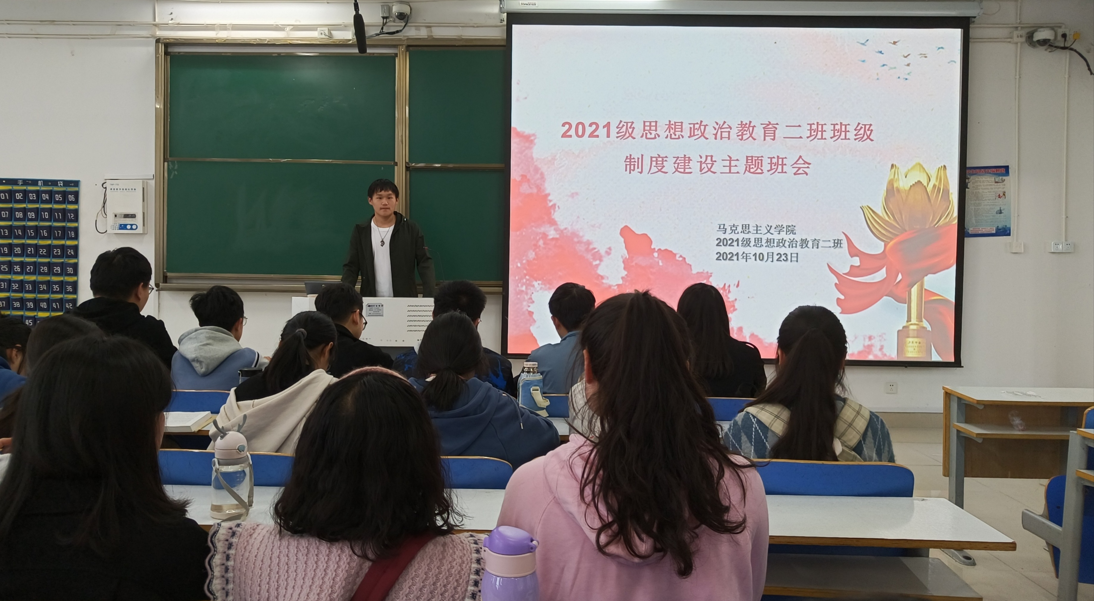11月10日上午,永利集团官网2021级思想政治教育二班组织生活会在社科楼514教室召开。2021级思想政治教育二班全体成员参与此次班会。班会由团支书王婧欣和副班长任振豪主持。