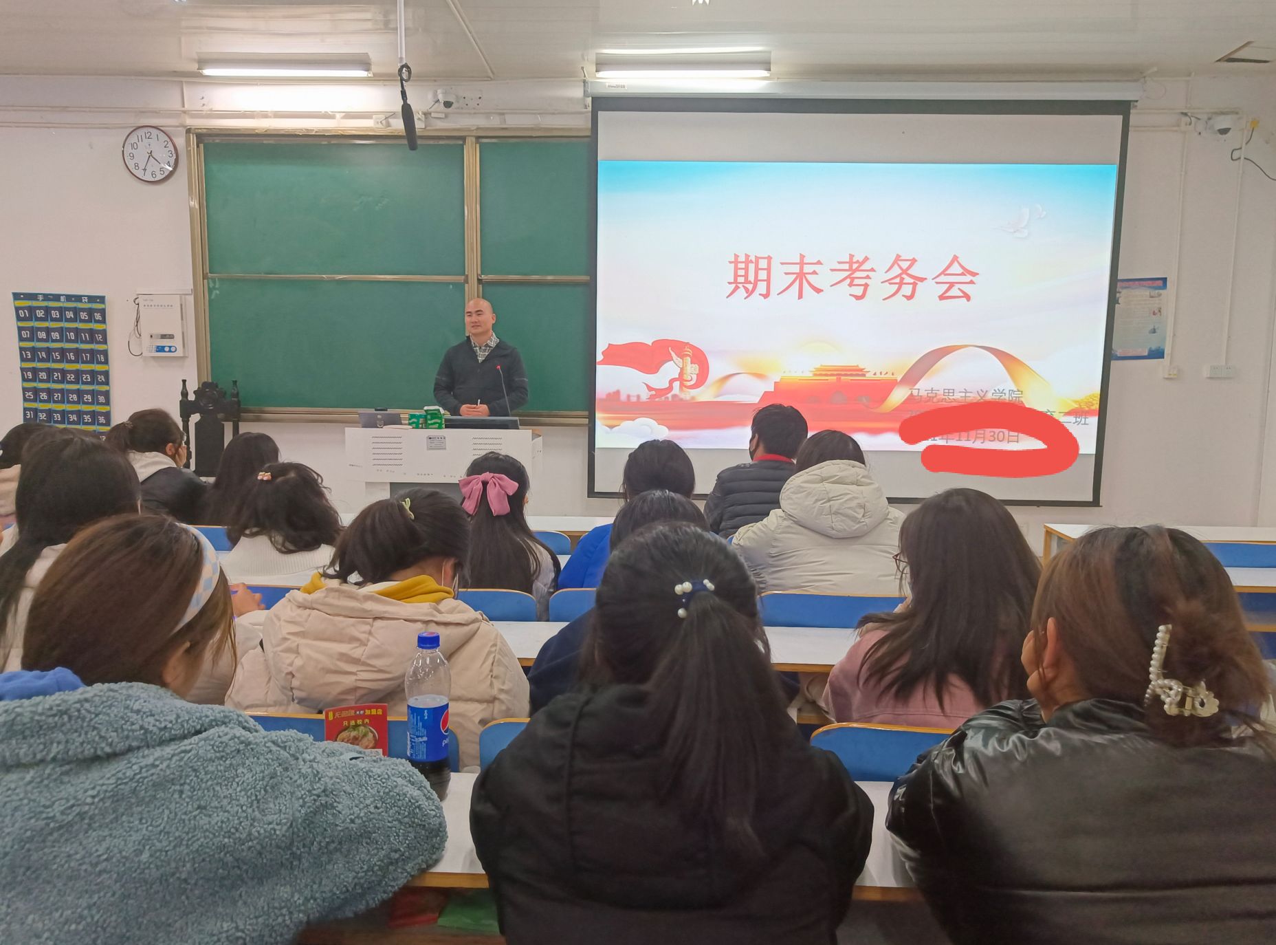 11月30日上午,永利集团官网2021级思想政治教育二班在社科楼514教室召开期末考务会。辅导员周文豪及2021级思想政治教育二班全体同学参加此次班会,班会由辅导员周文豪主持。