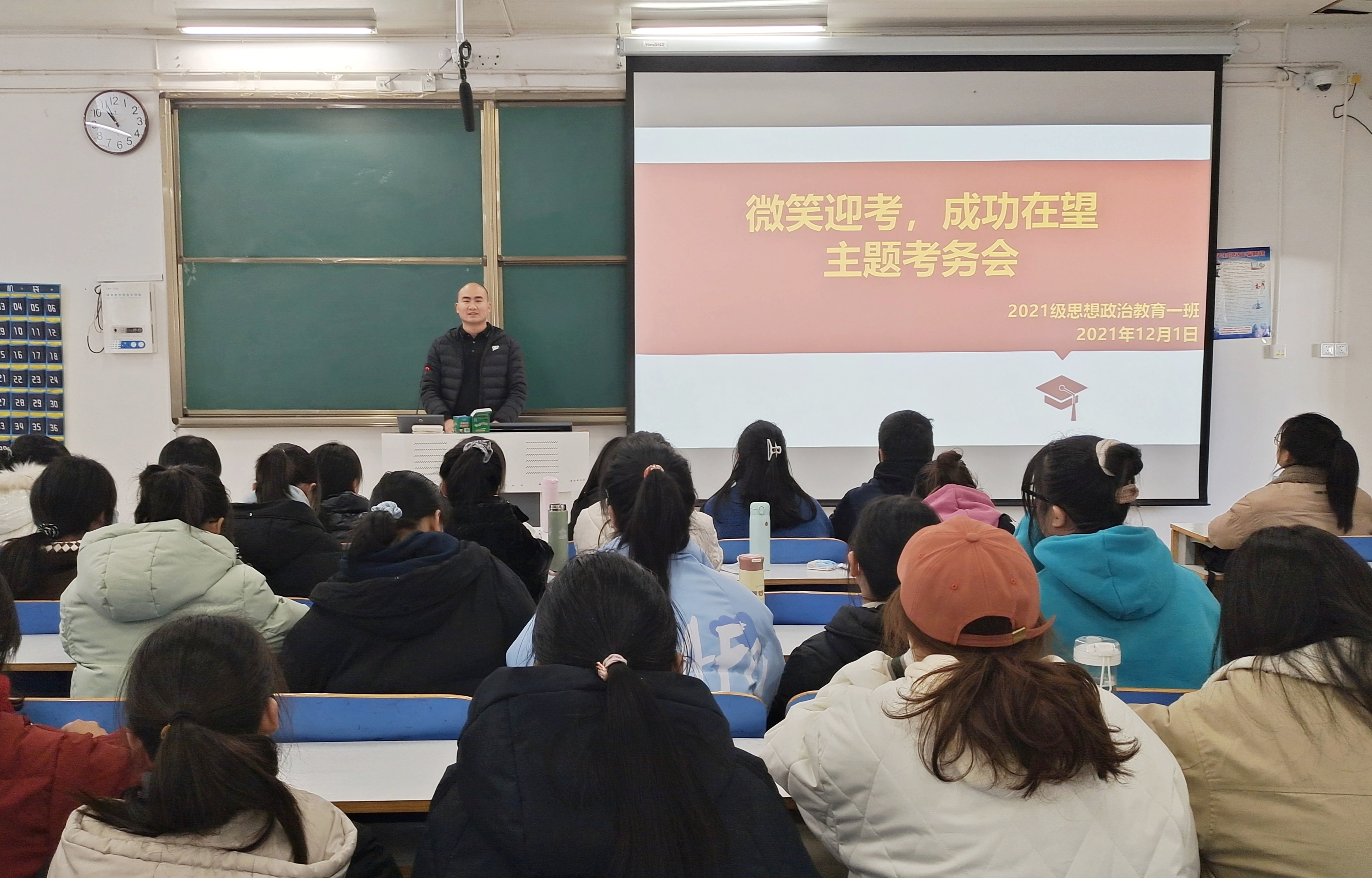 12月1日上午,永利集团官网2021级思想政治教育一班在社科楼514教室召开“微笑迎考,成功在望”主题考务会。辅导员周文豪及2021级思想政治教育一班全体成员参加本次会议。会议由团支书戴翰林主持。