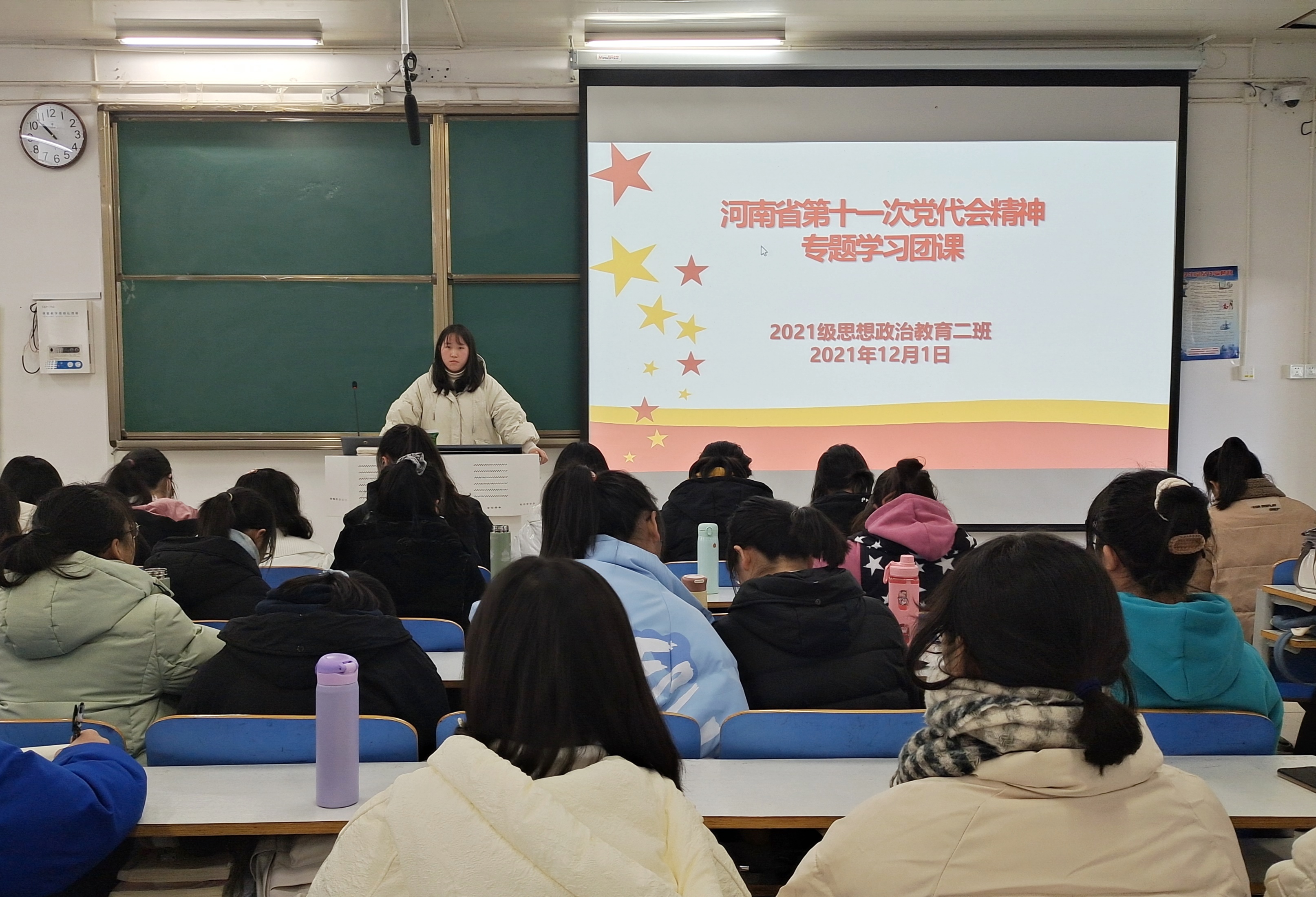 12月1日上午,永利集团官网2021级思想政治教育二班召开河南省第十一次党代会精神专题学习团课。2021级思想政治教育二班全体团员参加此次团课。团课由团支书王婧欣主持。
