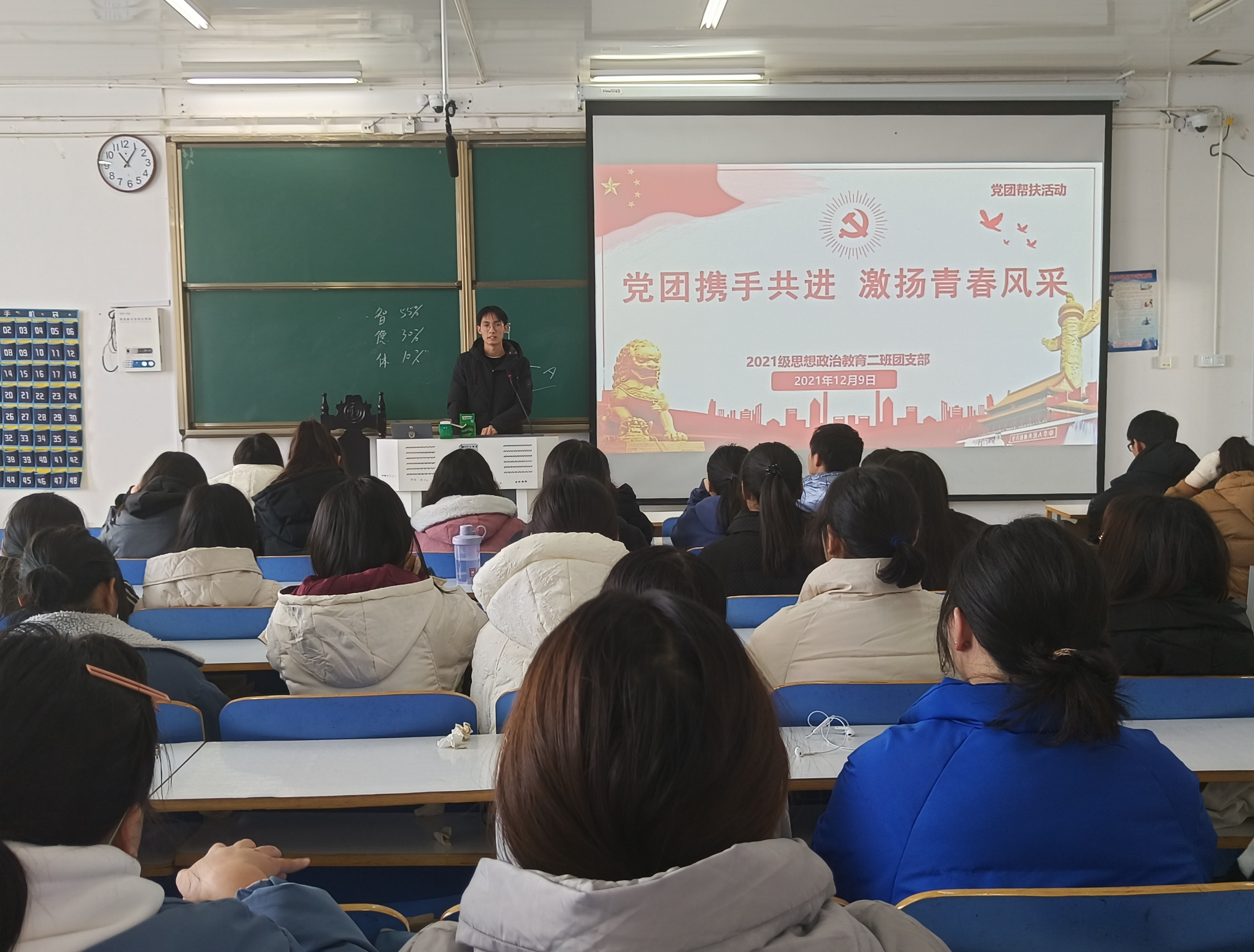 12月9日上午,永利集团官网2021级思想政治教育二班在社科楼516教室举办“党团携手共进,激扬青春风采”党团帮扶活动。王明亮、刘鹏及2021级思想政治教育二班全体团员参加此次活动。活动由团支书王婧欣主持。