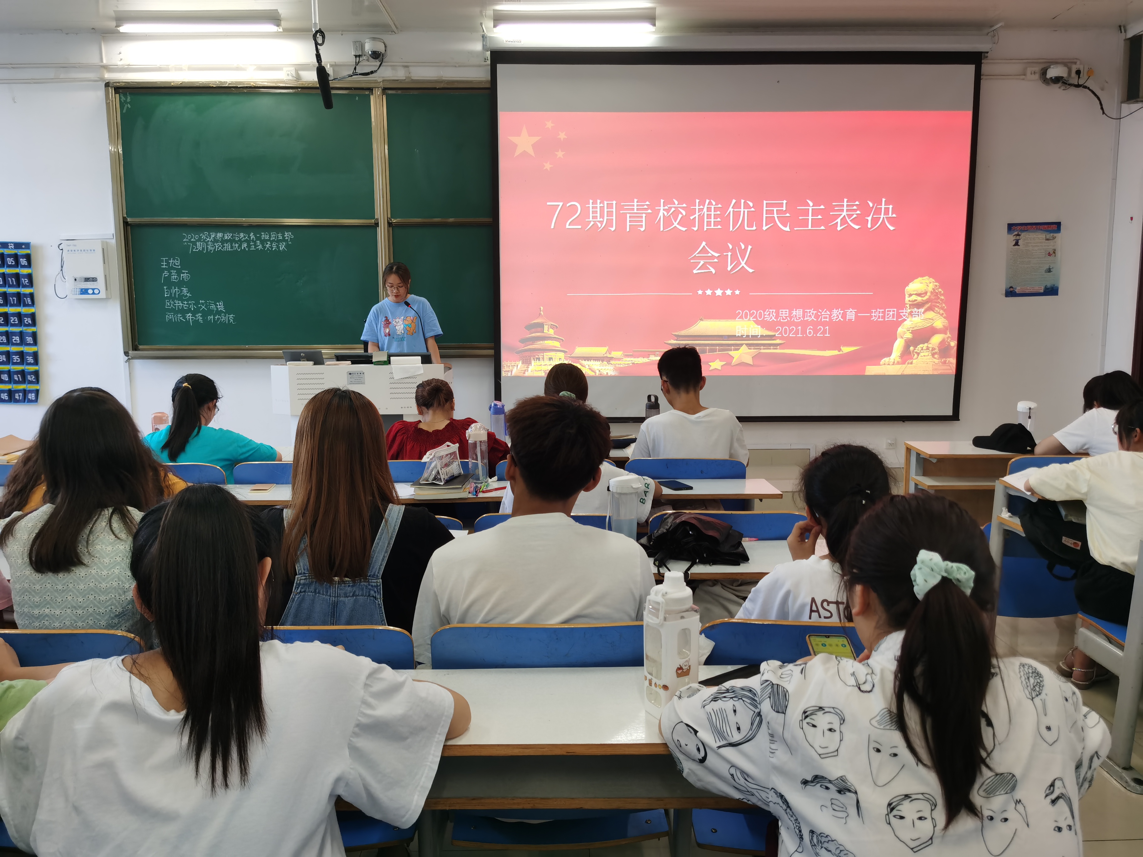 6月21日下午,永利集团官网2020级思想政治教育一班在社科楼514教室召开72期青校推优表决会议,2020级思想政治教育一班全体团员参加本次表决会议,大会由团支书卢茜雨主持。
