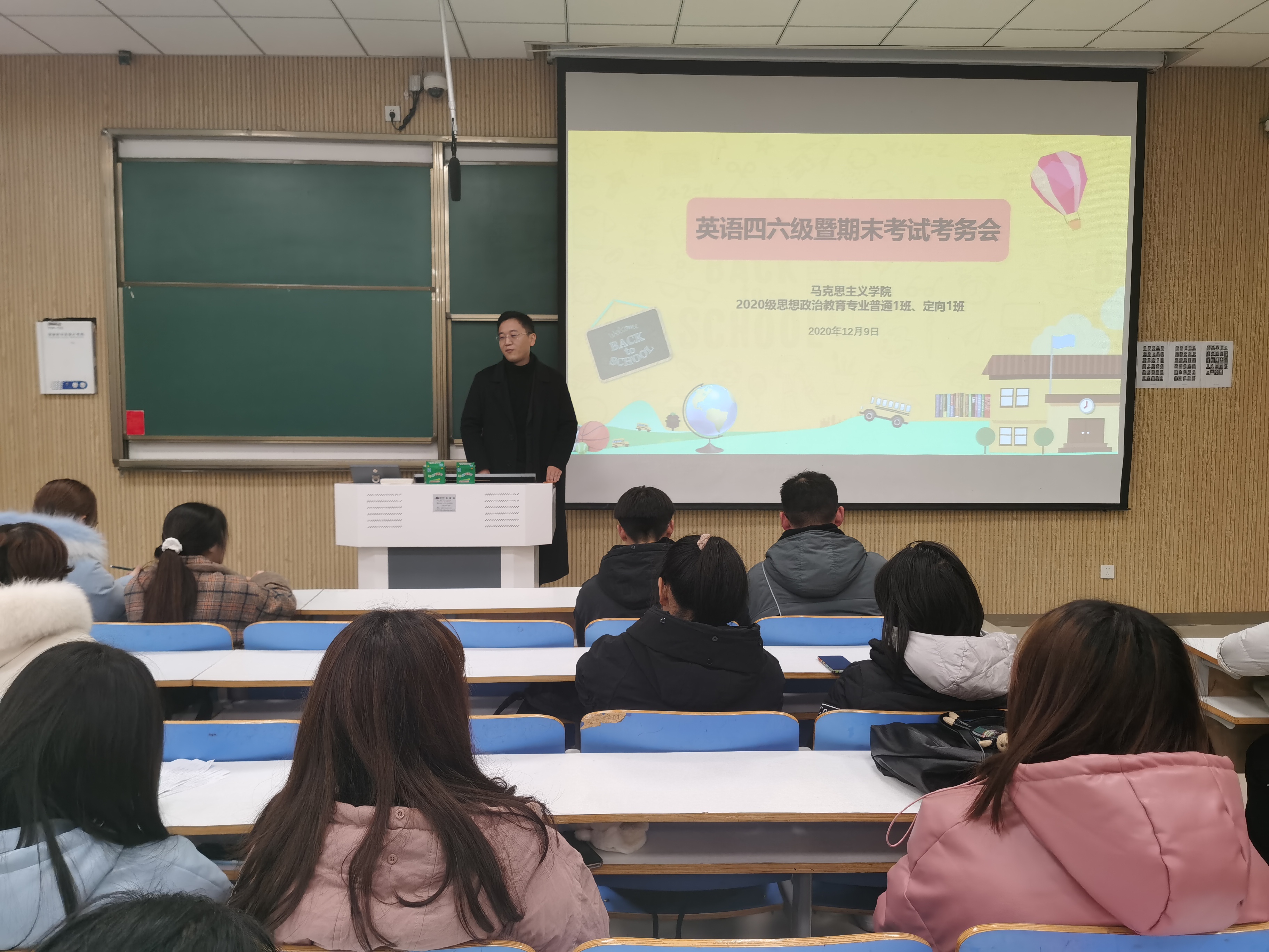 12月9日下午,永利集团官网2020级思想政治教育一班、定向一班在社科楼515教室顺利开展期末考试班级考务会,2020级思想政治教育一班、定向一班全体学生聆听了此次班会,班会由辅导员曹栋主持。