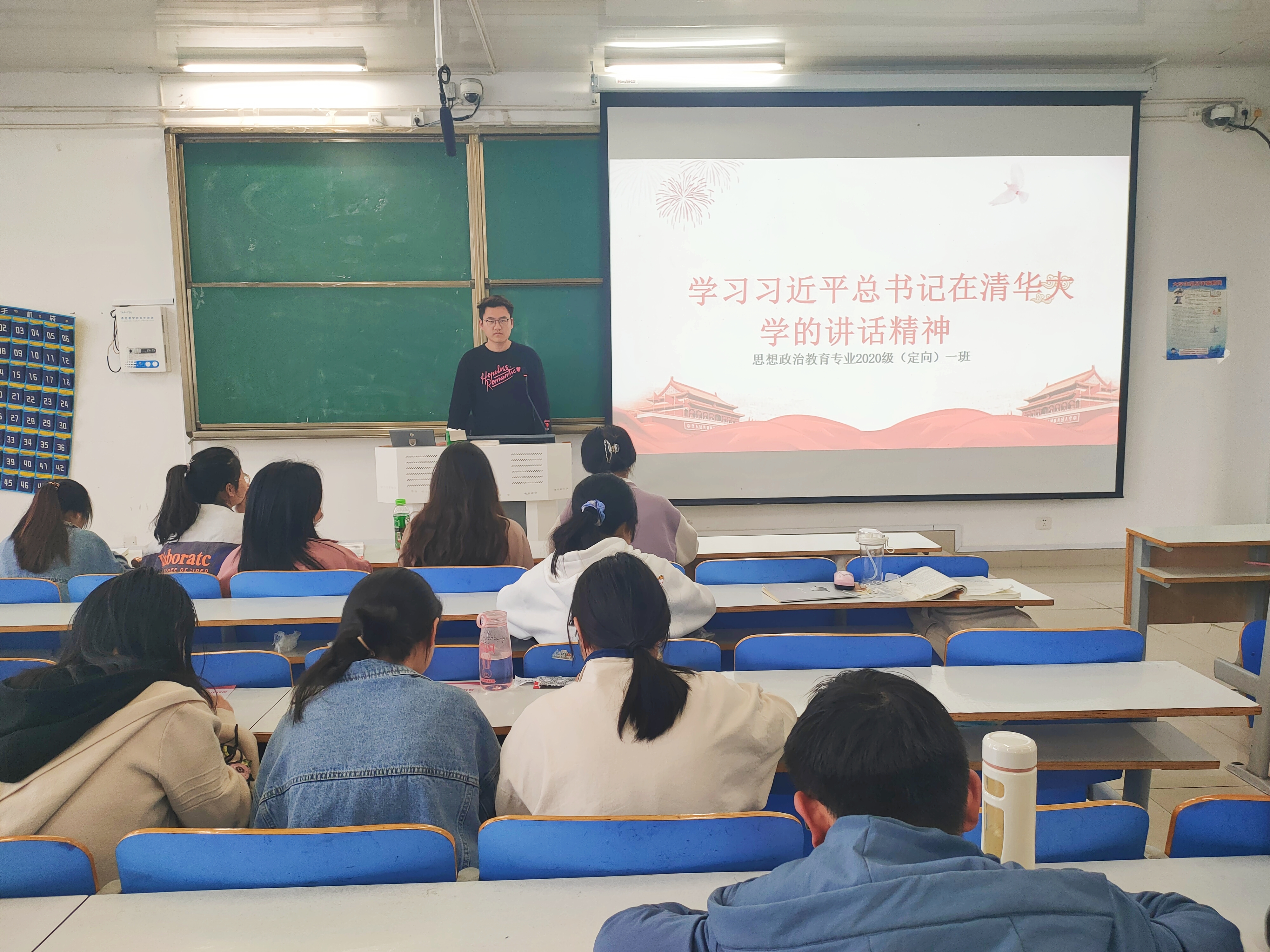 4月26日下午,永利集团官网思想政治教育(定向)一班在社科楼514教室顺利举办“学习习总书记在清华大学考察的讲话精神”主题班会。永利集团官网思想政治教育(定向)一班全体学生聆听了此次班会。班会由团支书朱紫峰主持。