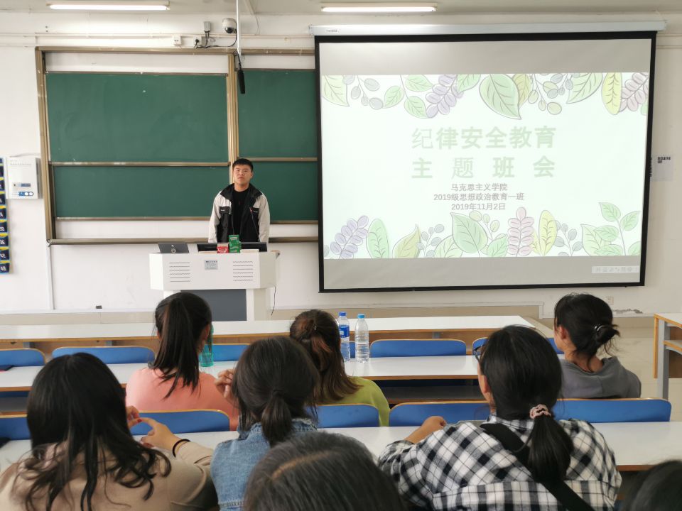 11月2日上午,永利集团官网2019级思想政治教育一班在社科楼516教室召开纪律安全教育主题班会,2019级思想政治教育一班全体同学参加本次会议。会议由班长王民主持。