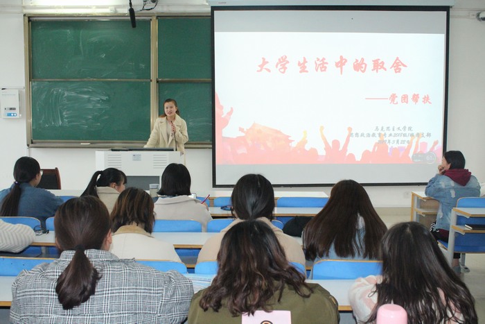 为充分发挥党员干部的先锋模范作用,帮助同学们解决学习和生活问题,3月22日下午,永利集团官网2018级思想政治教育一班在社科楼514教室顺利开展“党团帮扶”班会。2018级思政一班全体同学共同参加此次会议。会议由团支书靳雨露主持。