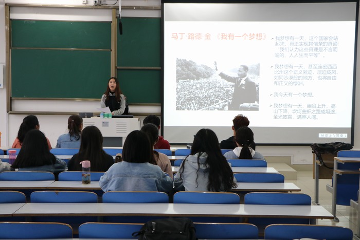 首先,牛笑怡以自身为例,结合对社会生活的观察,通过揭露社会不平等现状,引出其演讲的主题“生而平等,自尊自强”,表达出对新时代平等的追求与向往。随后,吕苗苗以优秀校长邵小林的故事为缩影,赞扬了无数像其一样爱岗敬业、无私奉献的人民教师。同时,她认为,作为新时代青年的我们应当积极学习前辈们爱岗敬业的优秀品质,为社会的建设与发展贡献力量。接着,卞晓莹以“托举哥”周冲为例,进一步阐释社会主义核心价值观的现实意义,鼓励大家在日常生活中积极培育和践行社会主义核心价值观,成为一名合格的社会主义建设者和接班人。评委对三位同学的展示进行打分,牛笑怡、吕苗苗以突出表现晋级学院复赛。