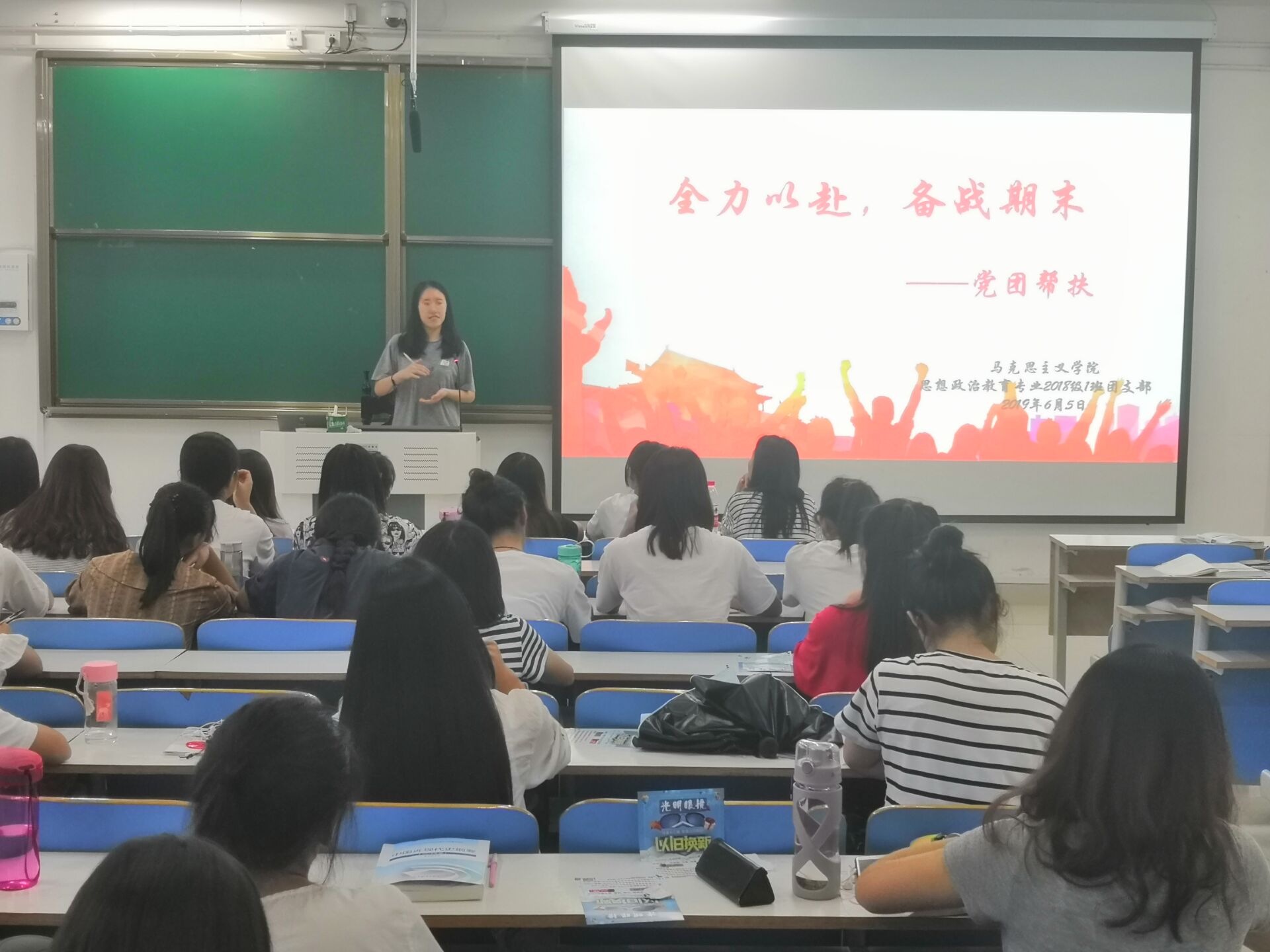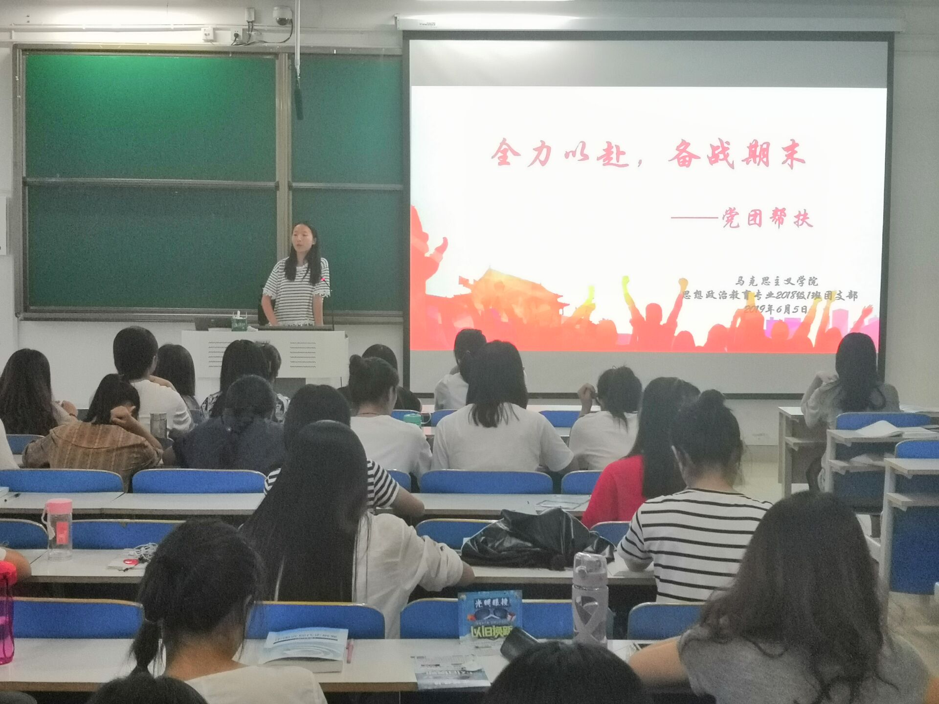 为充分发挥党员干部的先锋模范作用,帮助同学们解决学习和生活问题,6月5日下午,永利集团官网2018级思想政治教育一班在社科楼516教室顺利开展“党团帮扶”班会。2018级思政一班全体同学共同参加此次会议。会议由团支书靳雨露主持。