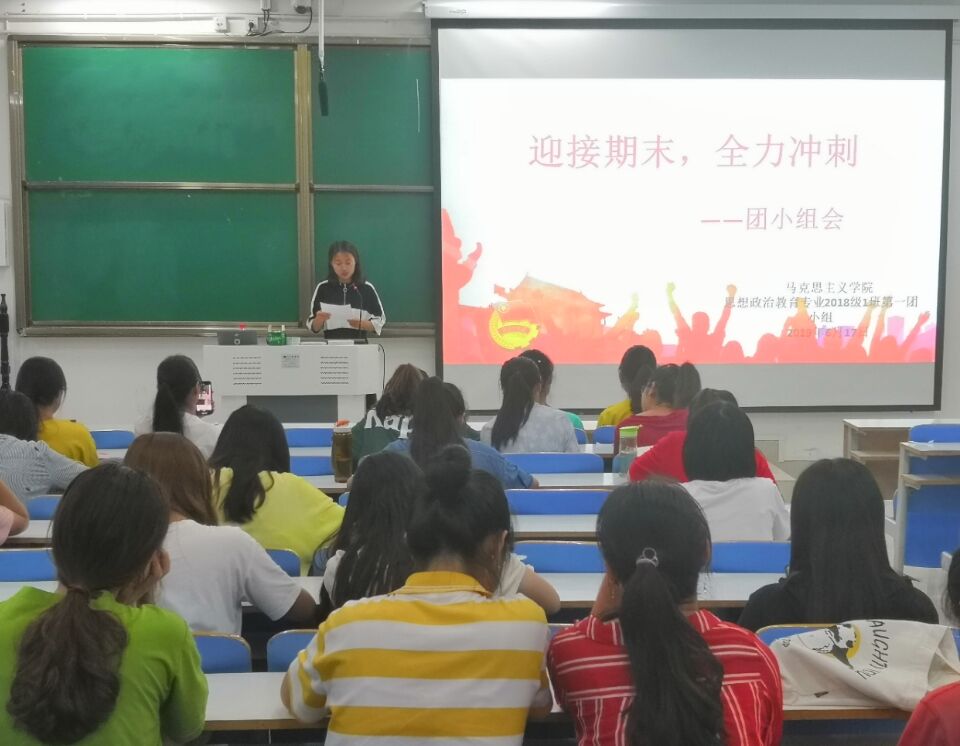 6月17日下午,永利集团官网2018级思想政治教育一班第一团小组在社科楼516教室顺利开展“迎接期末,全力冲刺”主题团会。第一团小组全体成员共同参加此次团会。此次团会由团小组成员魏子航主持。
