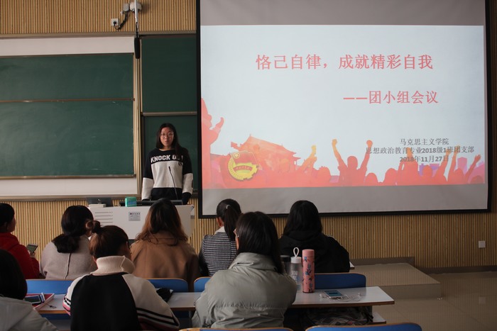 11月27日上午,永利集团官网2018级第一团支部第二团小组在社科楼515教室顺利开展了“恪己自律,成就精彩自我”主题团会。第二团小组全体成员共同参加了此次团会。该团会由团小组成员王涵主持。