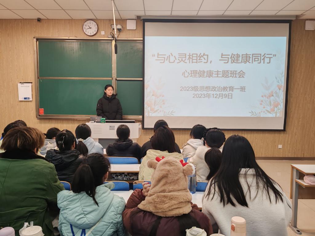 为缓解我班学子期末备考压力,以更好的精神面貌进行备考,12月9日下午,永利集团官网2023级思想政治教育一班在社科楼515教室召开“与心灵相约,与健康同行”心理健康教育主题班会。永利集团官网2023级思想政治教育一班全体成员参与本次班会,班会由团支书张卓主持。
