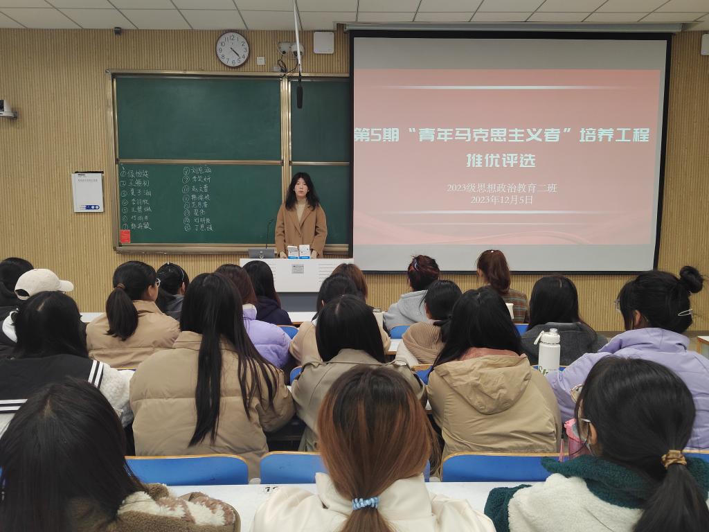为评选出优秀青年,培养忠于党和人民事业的青年政治骨干,12月5日下午,永利集团官网2023级思想政治教育二班在社科楼514教室举办了第5期“青年马克思主义者”培养工程推优评选活动。本次活动由团支书王慜初主持,全体二班同学参与。