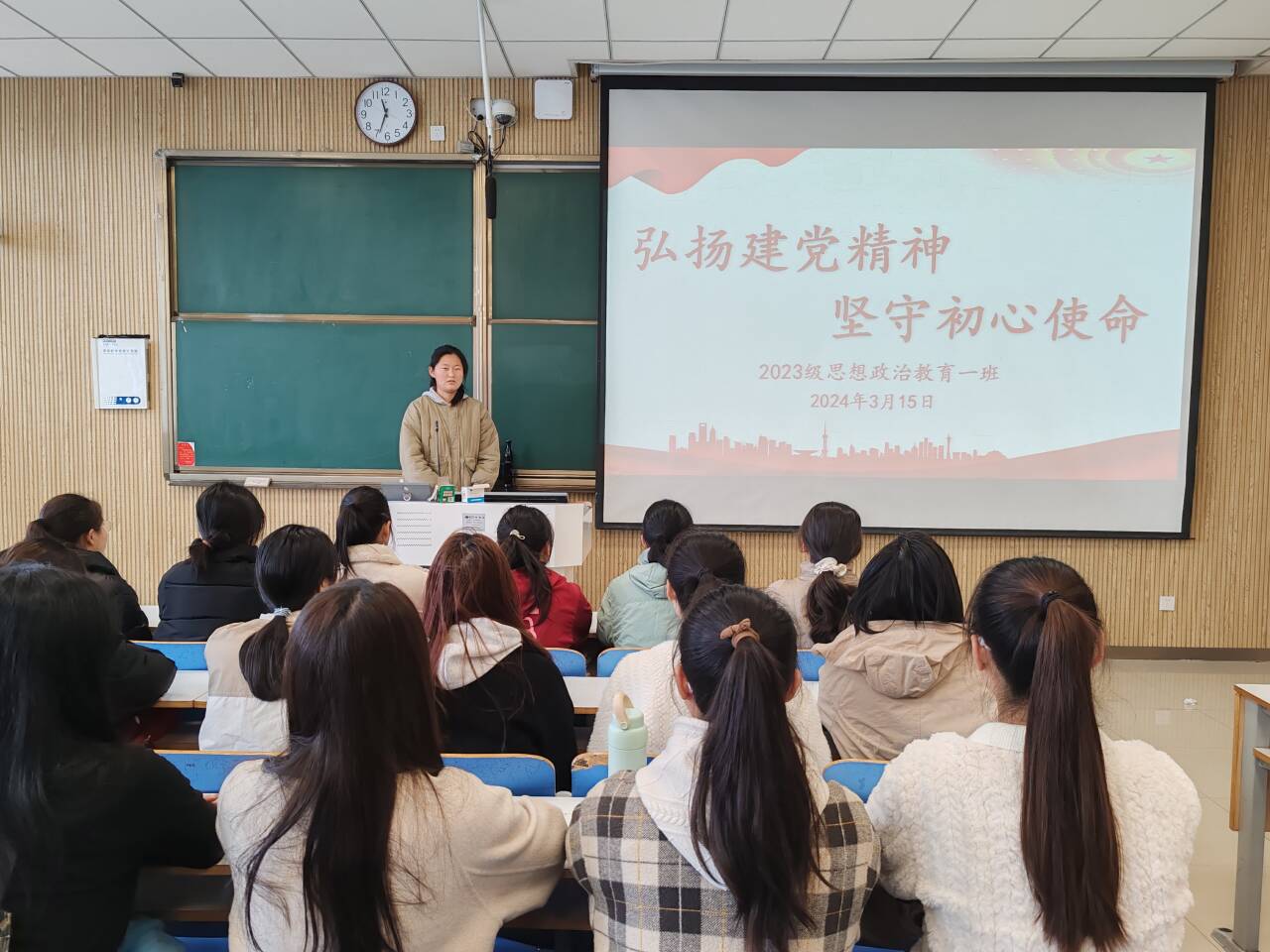 3月15日上午,永利集团官网2023级思想政治教育一班在社科楼515教室召开“弘扬建党精神,牢记初心使命”主题团课。永利集团官网2023级思想政治教育一班全体同学共同参与本次团课,团课由团支书张卓主持。