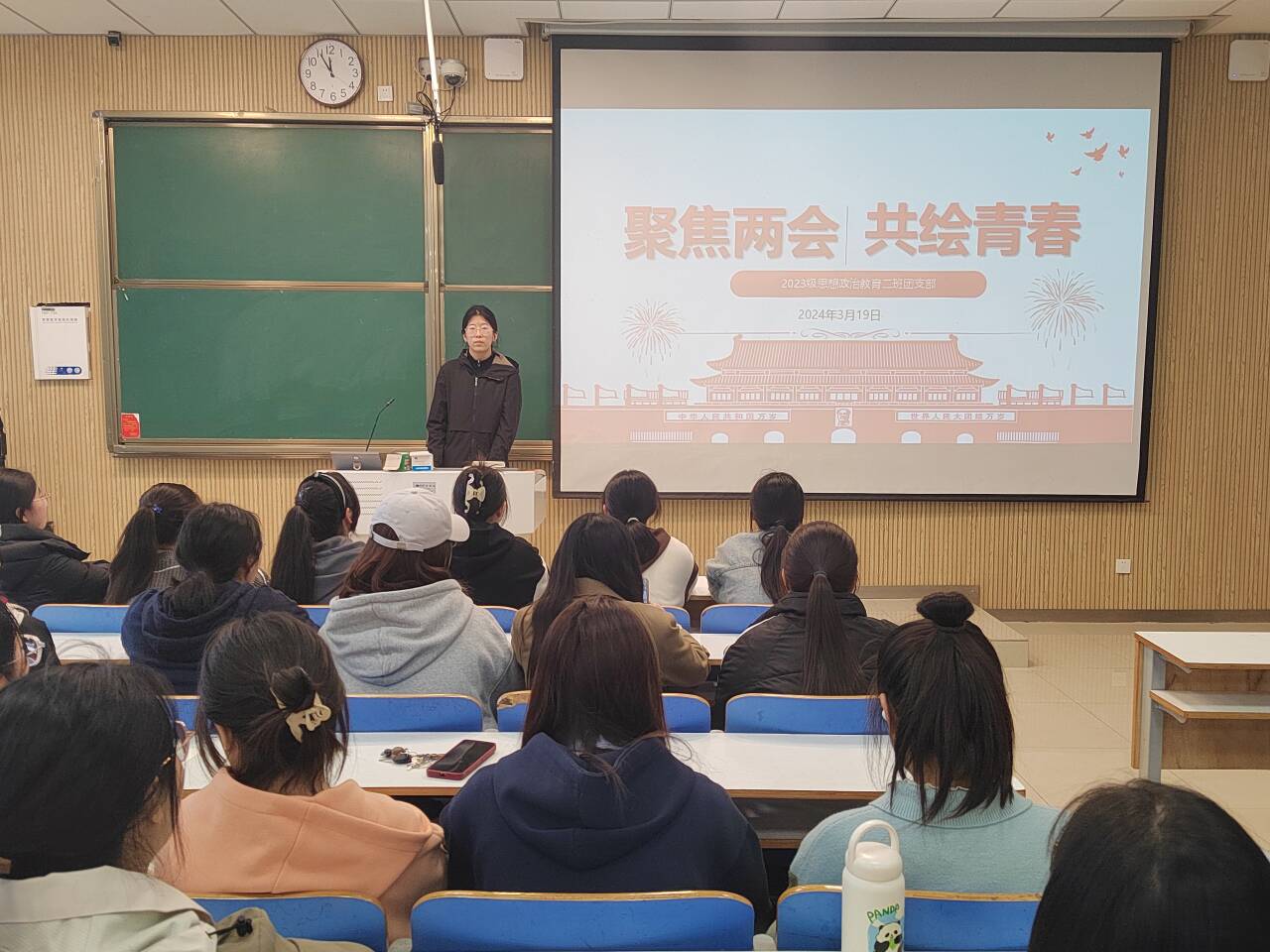 “时代总是把历史责任赋予青年”,为引导青年大学生听清时代脉搏,抓牢历史责任,3月19日下午,永利集团官网思想政治教育二班在社科楼515教室召开“聚焦两会,共绘青春”主题团课。本次团课由团支书王慜初主持,全体二班同学参加。