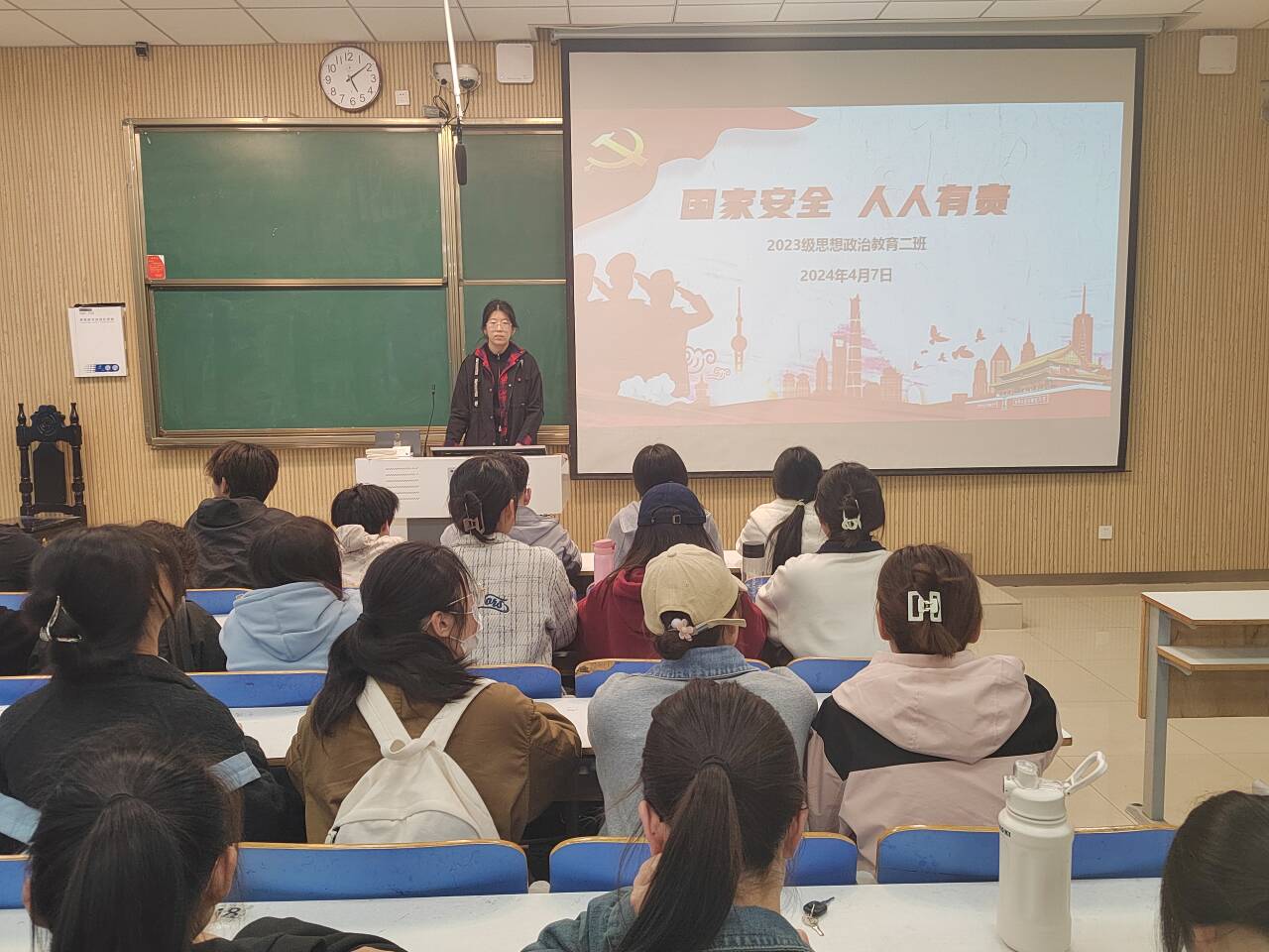 为帮助大学生了解国家安全教育的重要性和紧迫性,加强大学生国家安全意识,4月7日下午,永利集团官网2023级思想政治教育二班在社科楼515教室召开“国家安全,人人有责”主题班会。本次班会由团支书王慜初主持,全体二班同学参加。