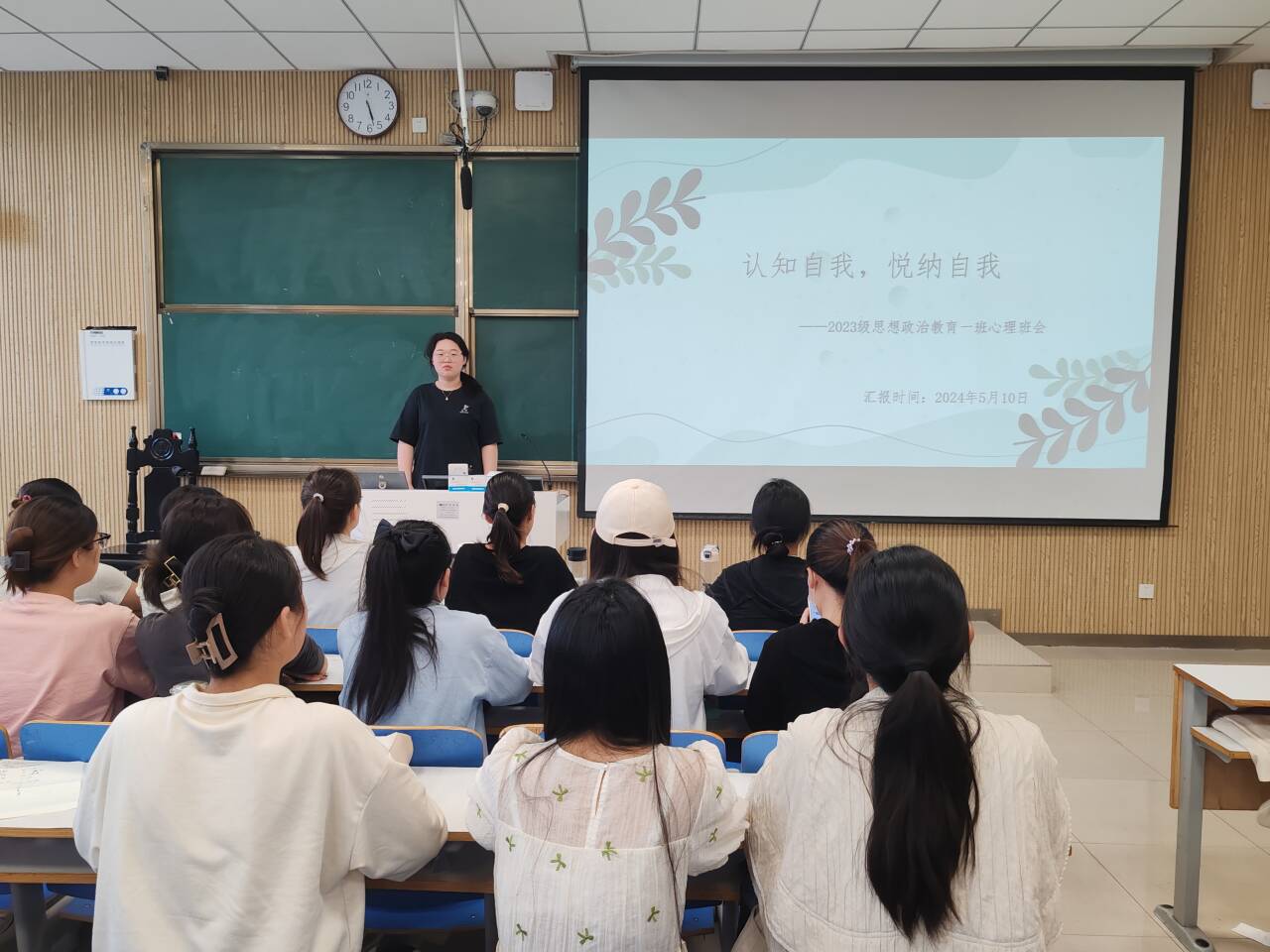 为进一步普及心理健康知识,提高我班学子的心理素质,促进学生身心健康发展,5月10日下午,永利集团官网2023级思想政治教育一班在社科楼515教室召开“认知自我,悦纳自我”心理班会。永利集团官网2023级思想政治教育一班全体同学共同参与本次班会,班会由心理委员夏一萌主持。