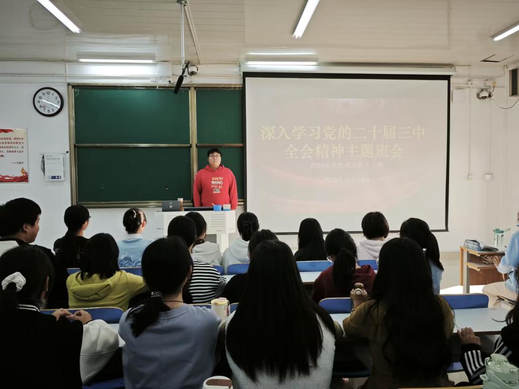 为深入学习党的二十届三中全会精神,深刻领会全面深化改革、推进中国式现代化的重大意义和战略部署,10月23日,永利集团官网 2024 级思想政治教育二班于社科楼514教室开展了 “深入学习党的二十届三中全会精神” 主题班会。本次班会由班长王志颖主持,二班全体同学共同参与。