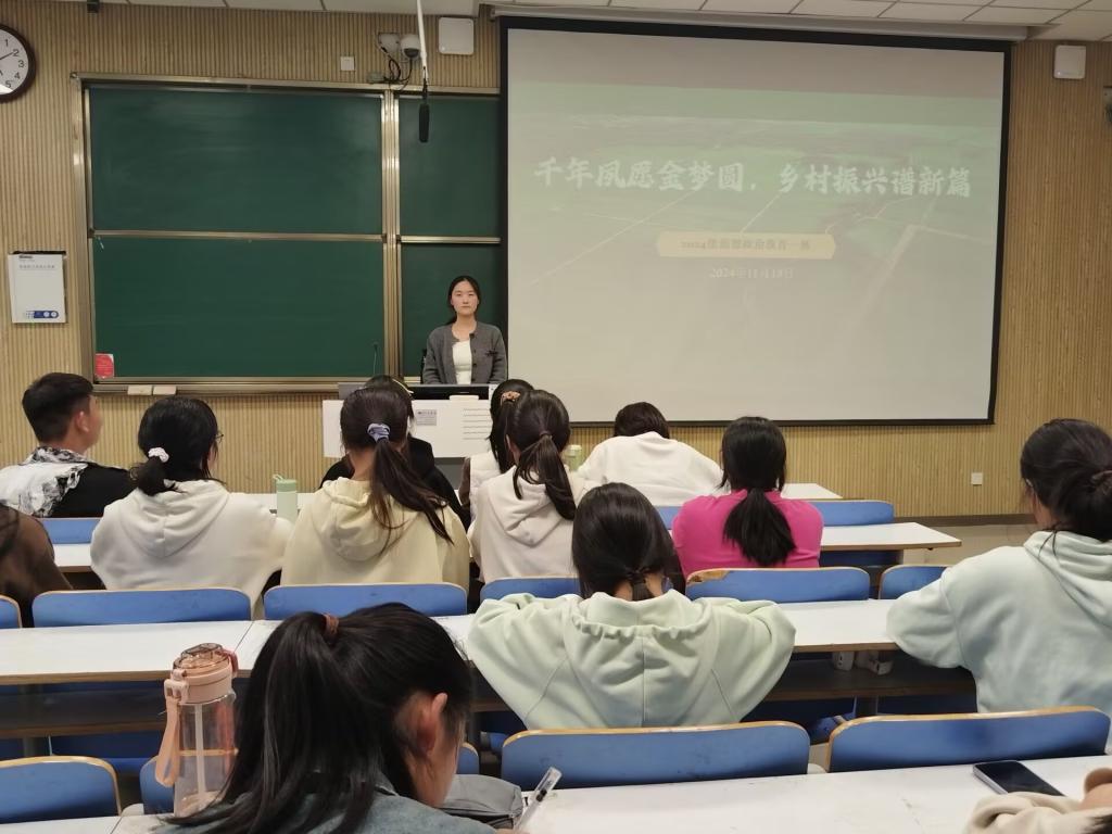 为深化同学们对乡村振兴战略的理解和认识,明确自身责任,在乡村振兴中贡献青春智慧和力量。11月18日上午,2024级思想政治教育一班在社科楼515教室开展“千年夙愿金梦圆,乡村振兴谱新章”主题团课,本次团课由团支书李冉主持,一班全体同学参加。
