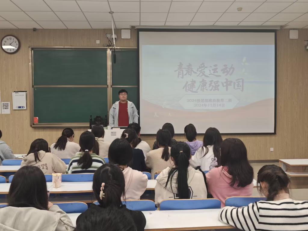 为响应国家大力推进体育强国建设的号召,同时激发同学们参与运动的热情,培养良好的运动习惯和生活方式, 11月14日下午,永利集团官网 2024 级思想政治教育二班于社科楼515教室举办了 “青春爱运动,健康强中国”主题团课活动。此次团课由团支书王志颖主持,二班全体同学共同参与。