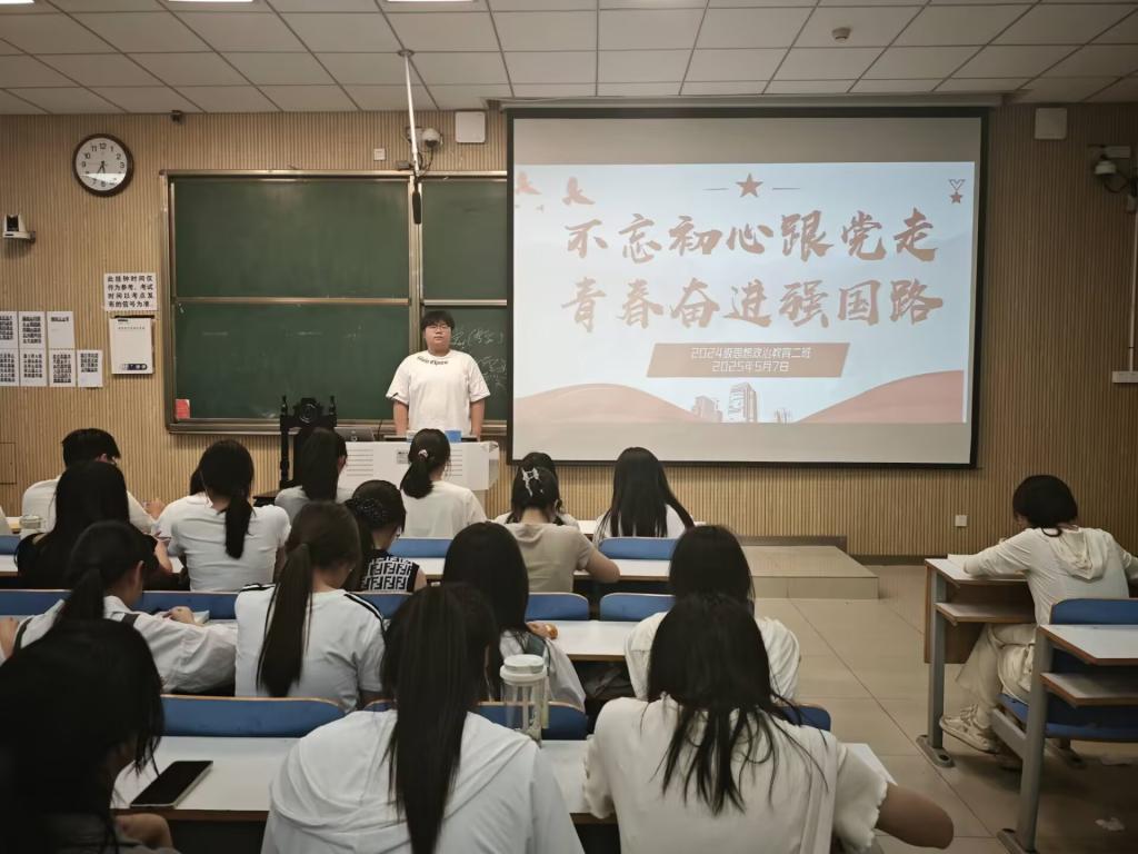 为引导青年学生牢记初心使命,坚定理想信念,以实际行动践行党的领导和时代担当,5月7日下午,永利集团官网2024级思想政治教育二班在社科楼515教室举办了“不忘初心跟党走,青春奋进强国路”主题团课。此次团课由团支书王志颖主持,二班全体同学共同参与。