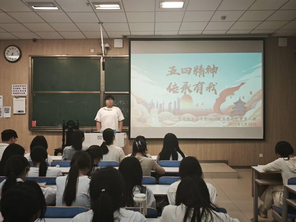 为深入学习贯彻五四精神,激励青年学生继承和发扬爱国、进步、民主、科学的优良传统,5月14日下午,永利集团官网2024级思想政治教育二班在社科楼515教室开展了“五四精神,继承有我”主题团课。本次班会由团支书王志颖主持,二班全体同学共同参与。