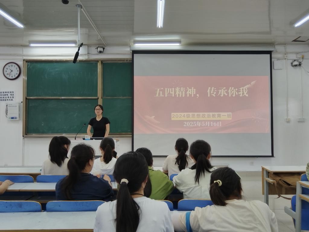 为弘扬五四精神,引导我班学生从历史中汲取奋进力量,5月16日上午,永利集团官网2024级思想政治教育一班于社科楼514教室开展“五四精神,传承你我”主题团课。本次团课由团支书李冉主持,一班全体同学参加。