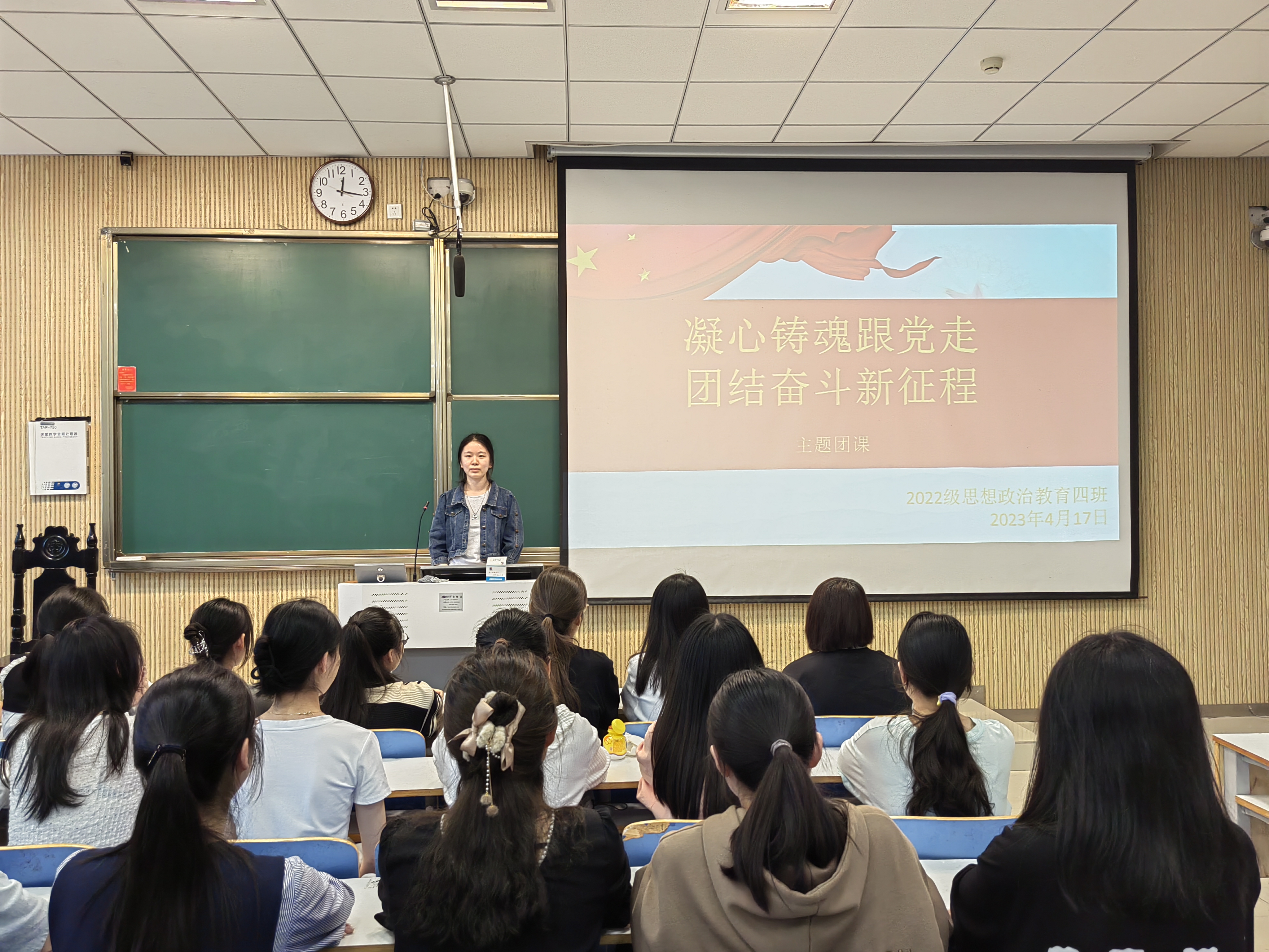4月17日下午,永利集团官网2022级思想政治教育四班在社科楼515教室召开“凝心铸魂跟党走,团结奋斗新征程”主题团课,永利集团官网2022级思想政治教育四班全体同学参与本次团课。团课由团支书牛志杰主持。