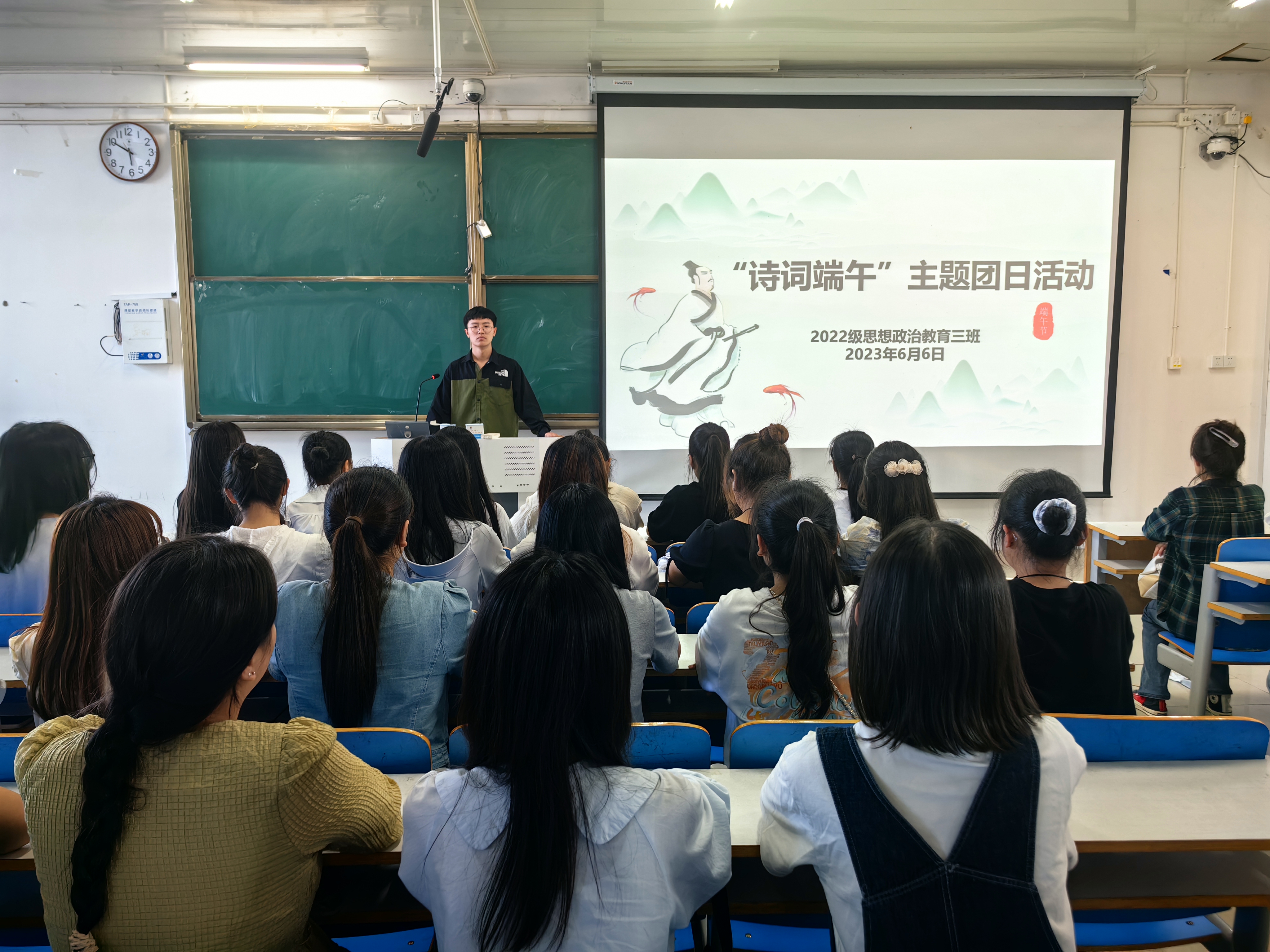 6月6日下午,永利集团官网2022级思想政治教育三班在社科楼514教室开展“诗词端午”主题团日活动。永利集团官网2022级思想政治教育三班全体成员共同参加此次团日活动。活动由团支书余浩洋主持。