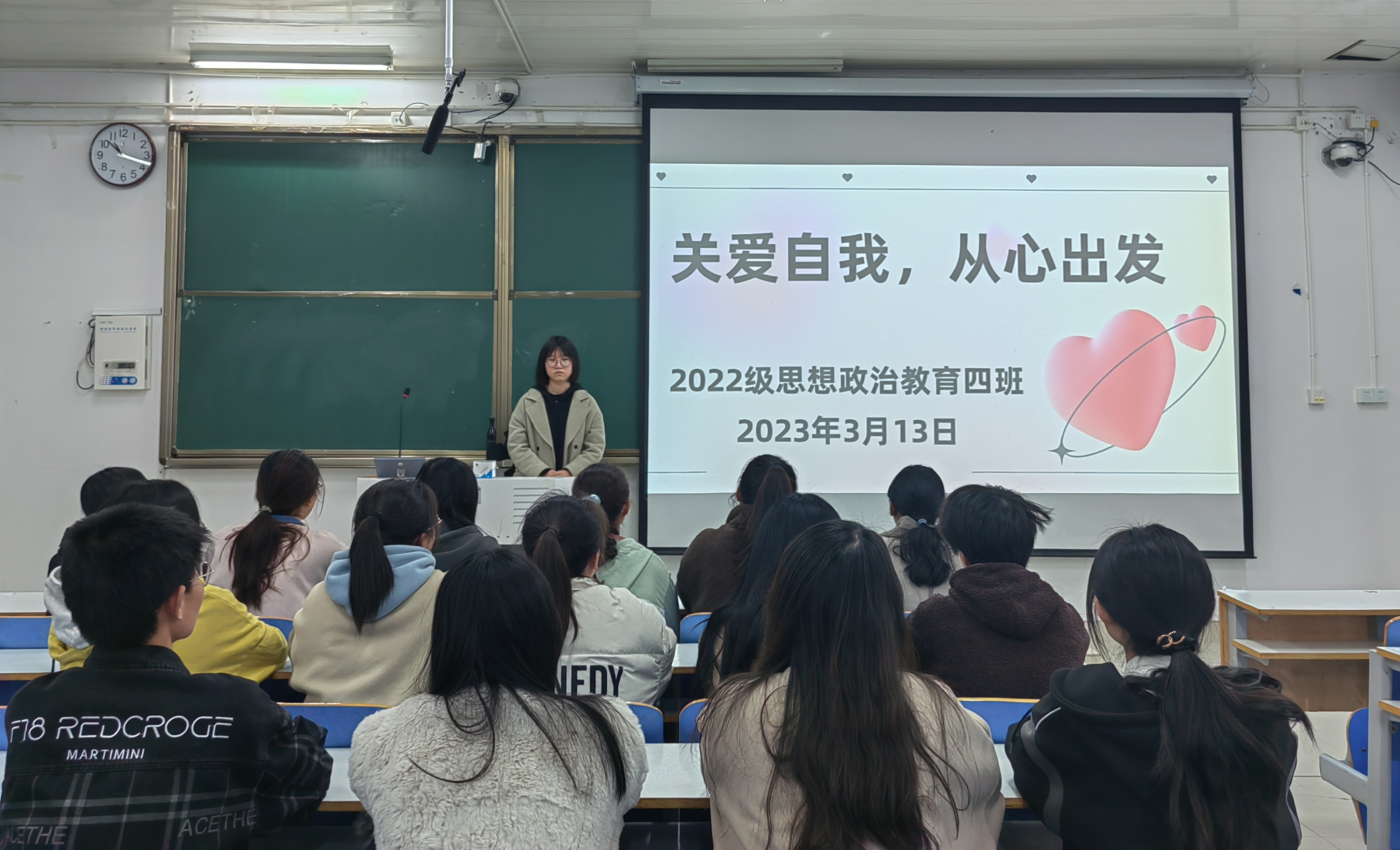 为加强学生心理健康教育,促进其身心和谐发展,3月13日下午,永利集团官网2022级思想政治教育四班在社科楼514教室召开“关爱自我,从心出发”主题班会,2022级思想政治教育四班全体同学参加本次班会。班会由心理委员徐成若主持。