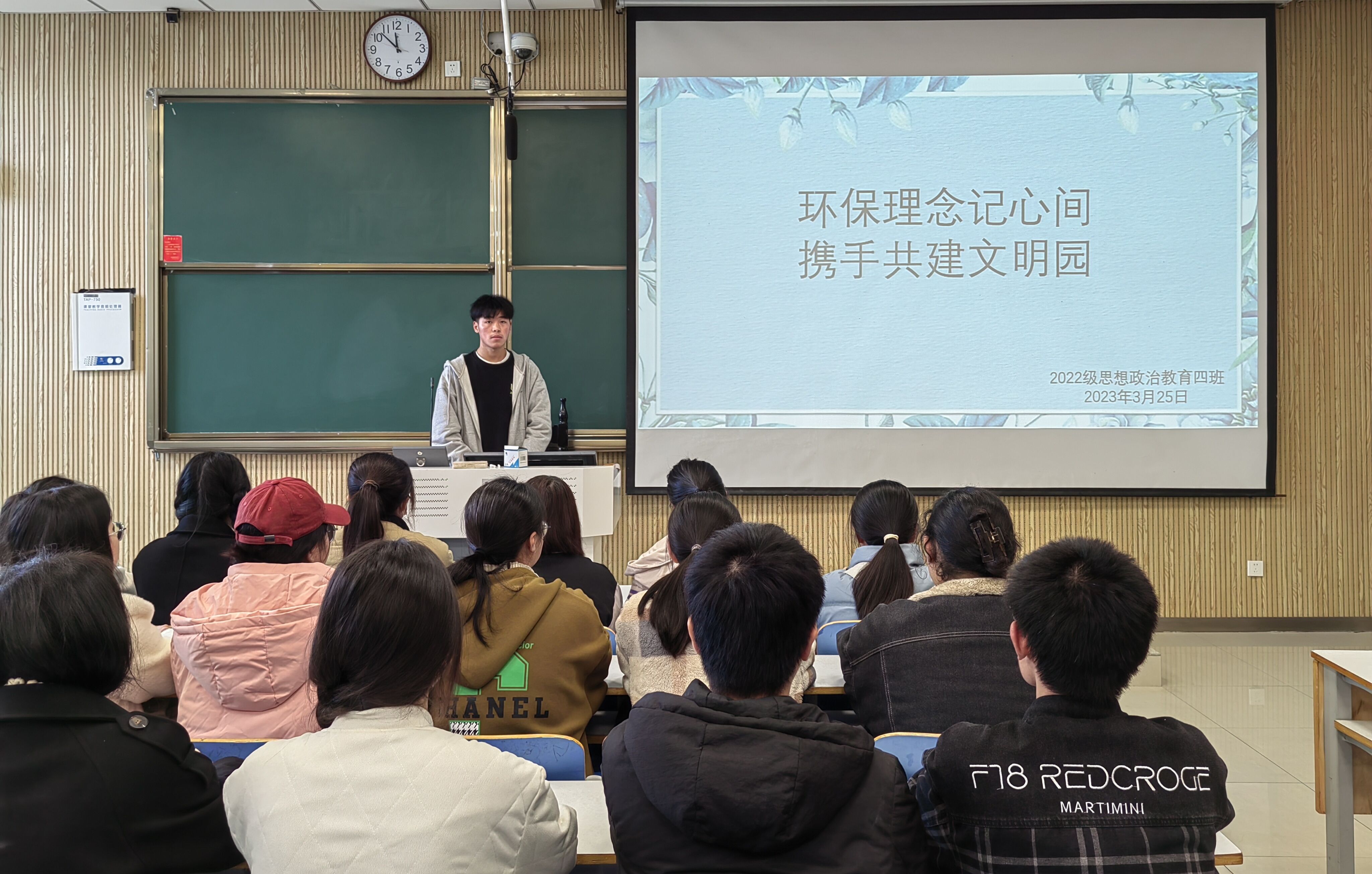 为引导同学们树立文明卫生意识,践行绿色环保生活方式,3月25日下午,永利集团官网2022级思想政治教育四班在社科楼515教室召开“环保理念记心间,携手共建文明园”主题班会,永利集团官网2022级思想政治教育四班全体同学参与本次班会。会议由卫生委员李烁主持。