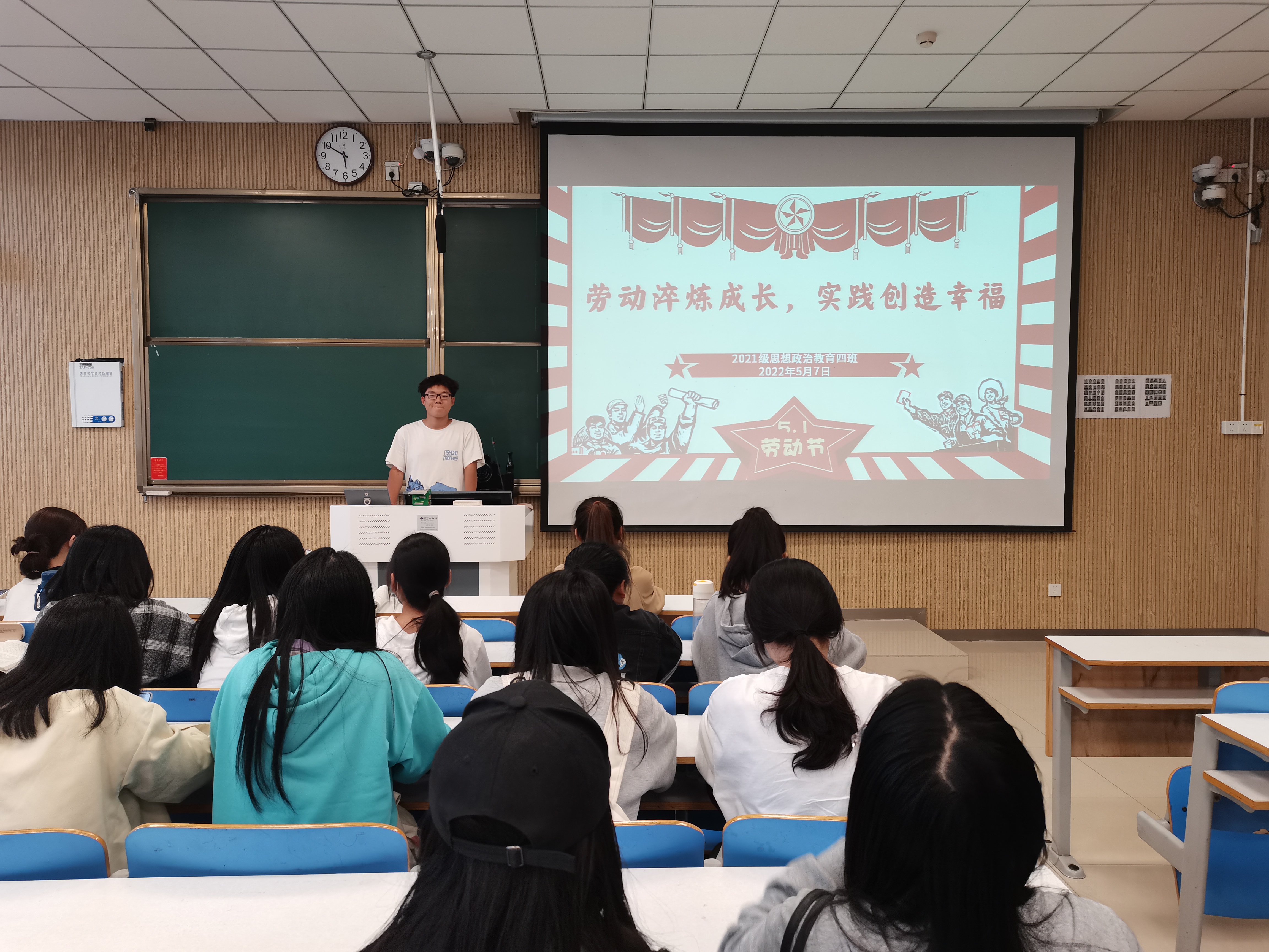为培养同学们的劳动能力,让劳动精神在青年中发扬光大,5月7日下午,永利集团官网2021级思想政治教育四班在社科楼515教室开展“劳动淬炼成长,实践创造幸福”主题班会。2021级思想政治教育四班全体同学共同参会。班会由副班长常康哲主持。