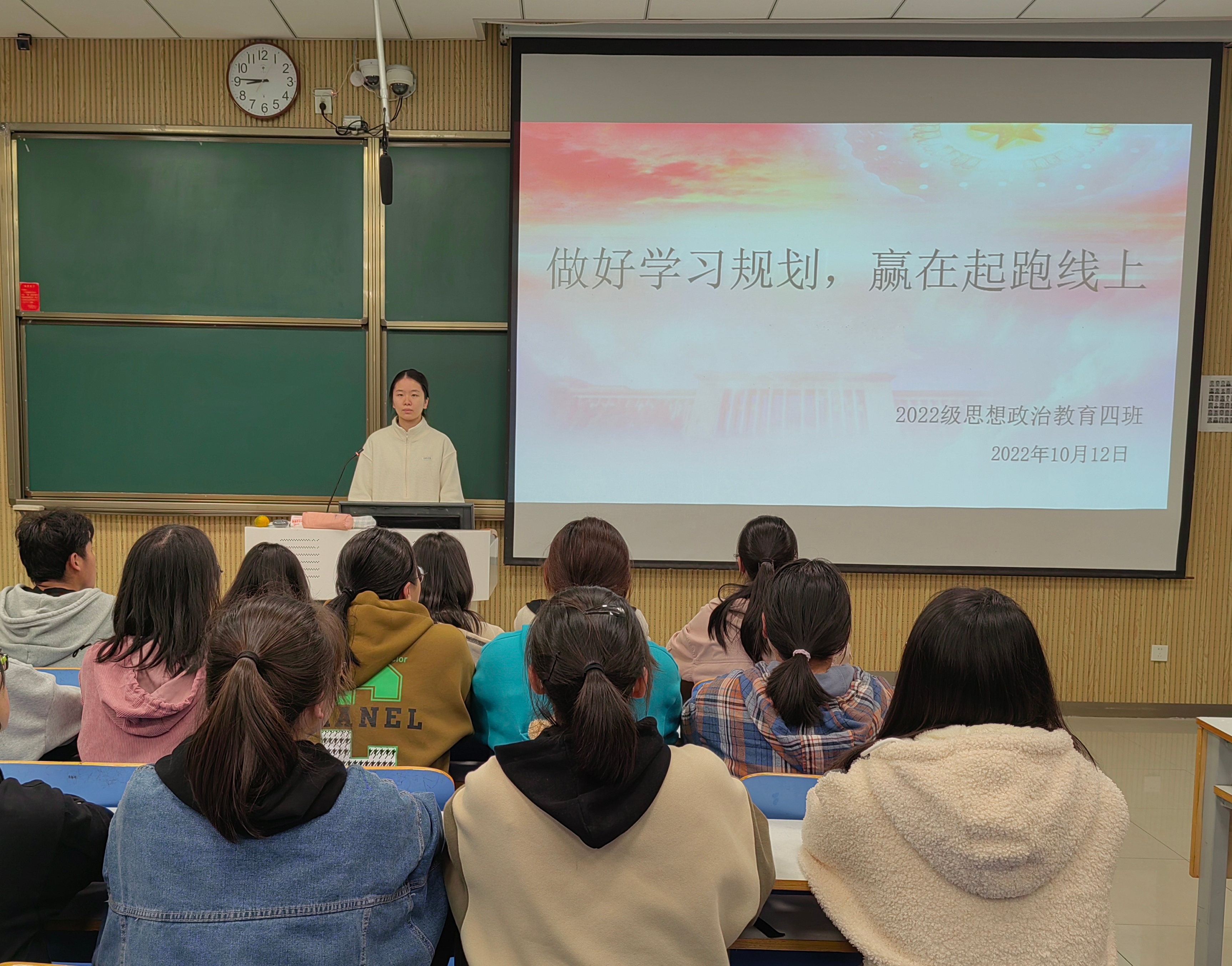 10月12日下午,永利集团官网2022级思想政治教育四班在社科楼515教室召开“做好学习规划,赢在起跑线上”主题班会。班会由班长牛志杰主持召开。