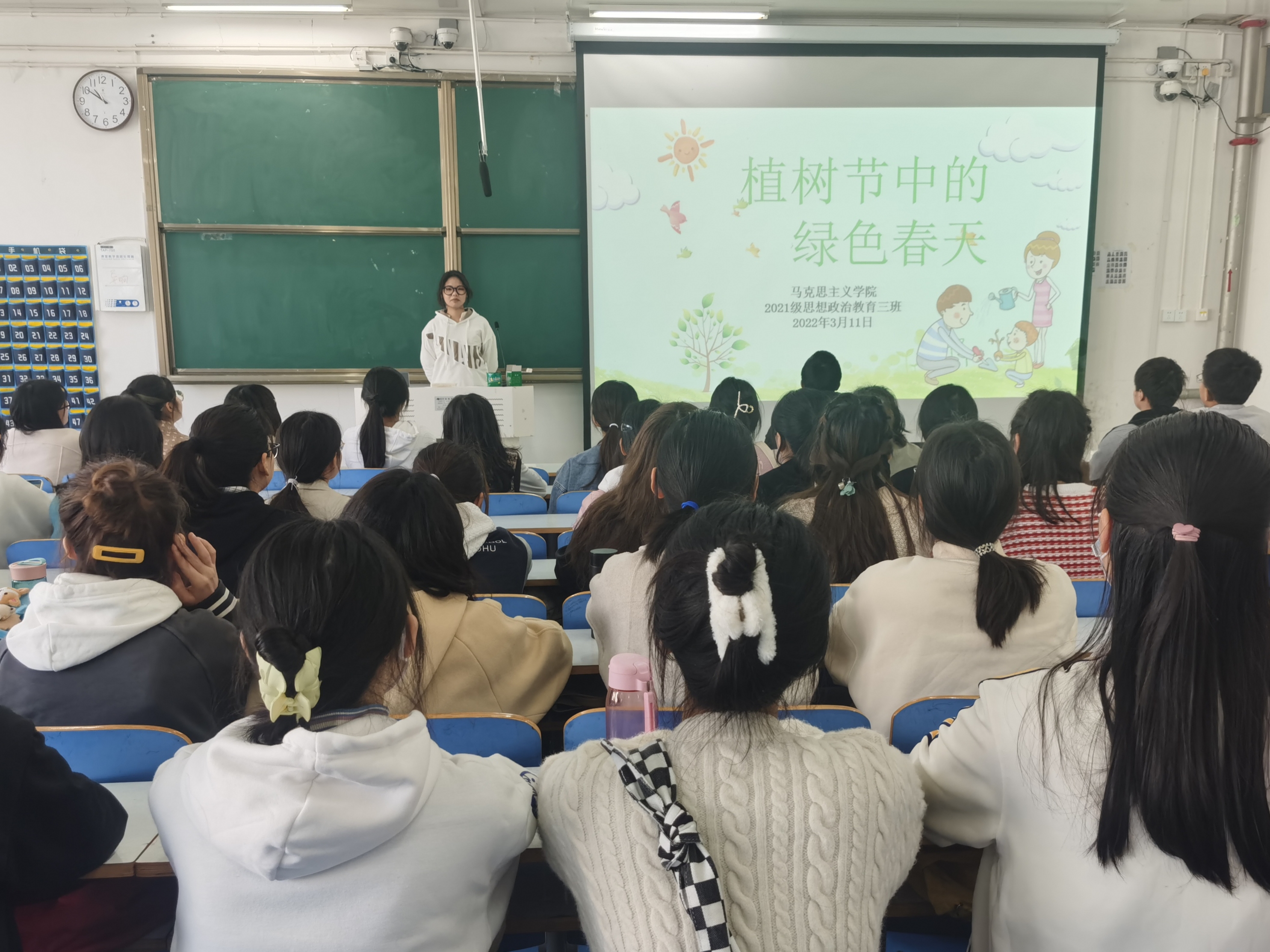 3月9日上午,永利集团官网2021级思想政治教育三班在社科楼516教室举办“植树节中的绿色春天”主题班会。2021级思想政治教育三班全体成员参加了本次会议。会议由心理委员兼生活委员许竞文主持。