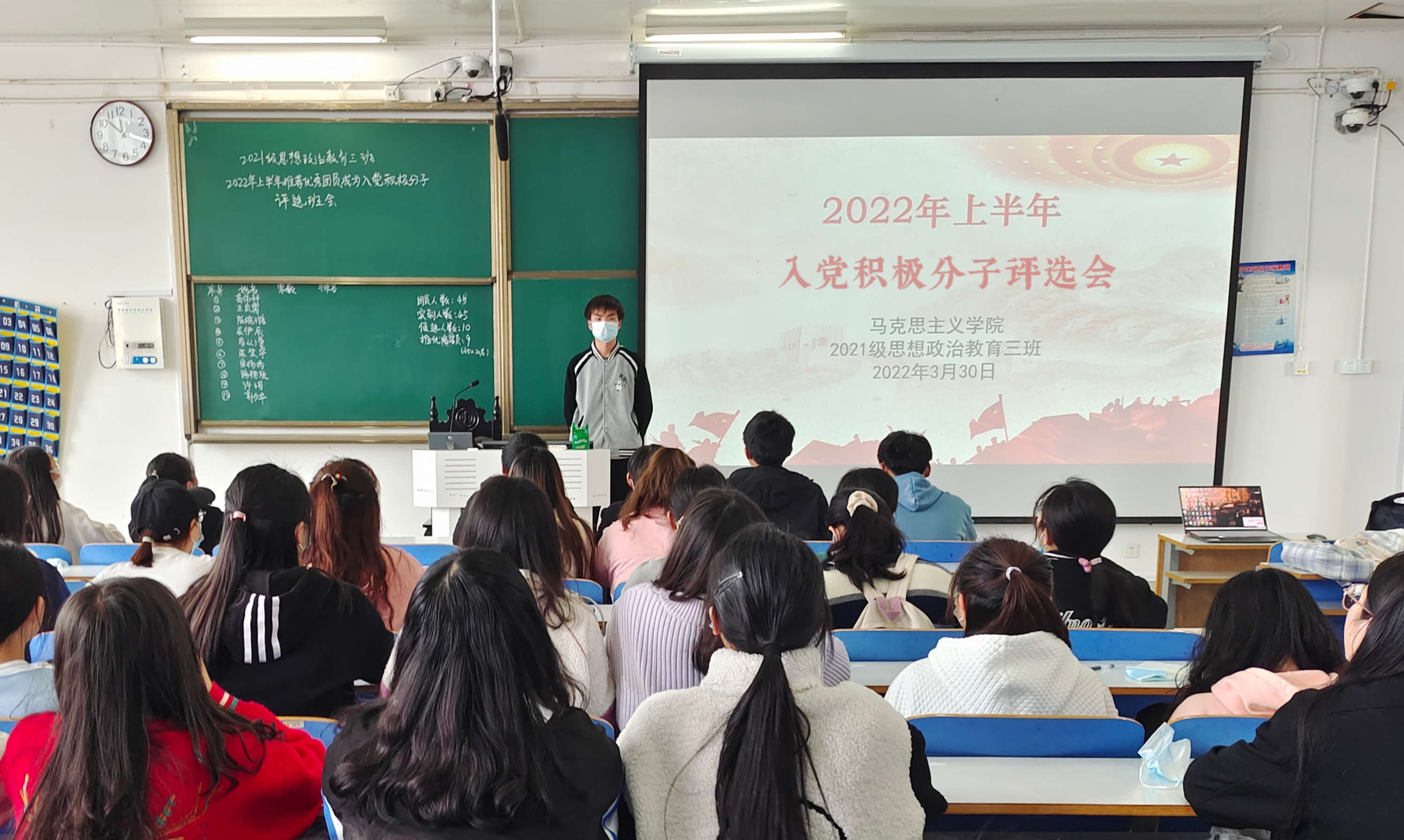 3月30日上午,永利集团官网2021级思想政治教育三班在社科楼514教室召开2022年上半年入党积极分子评选会。2021级思想政治教育三班全体同学参加了此次会议。会议由团支书郭少华主持。