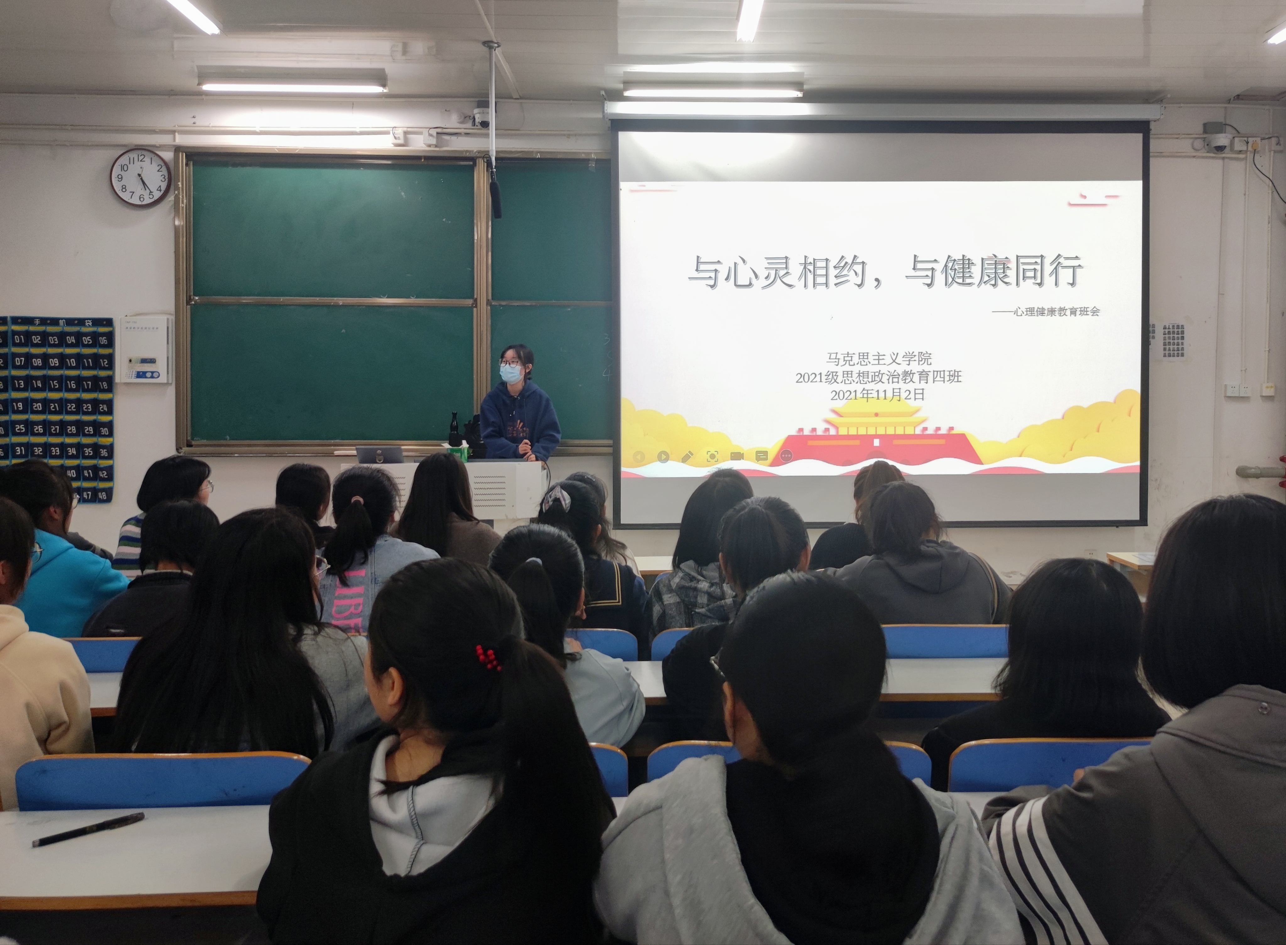 为了普及心理知识,营造班级良好氛围。11月2日上午,永利集团官网2021级思想政治教育四班“与心灵相约,与健康同行”主题班会在社科楼516教室顺利开展。2021级思想政治教育四班全体同学参加了本次班会。班会由心理委员杨可主持。