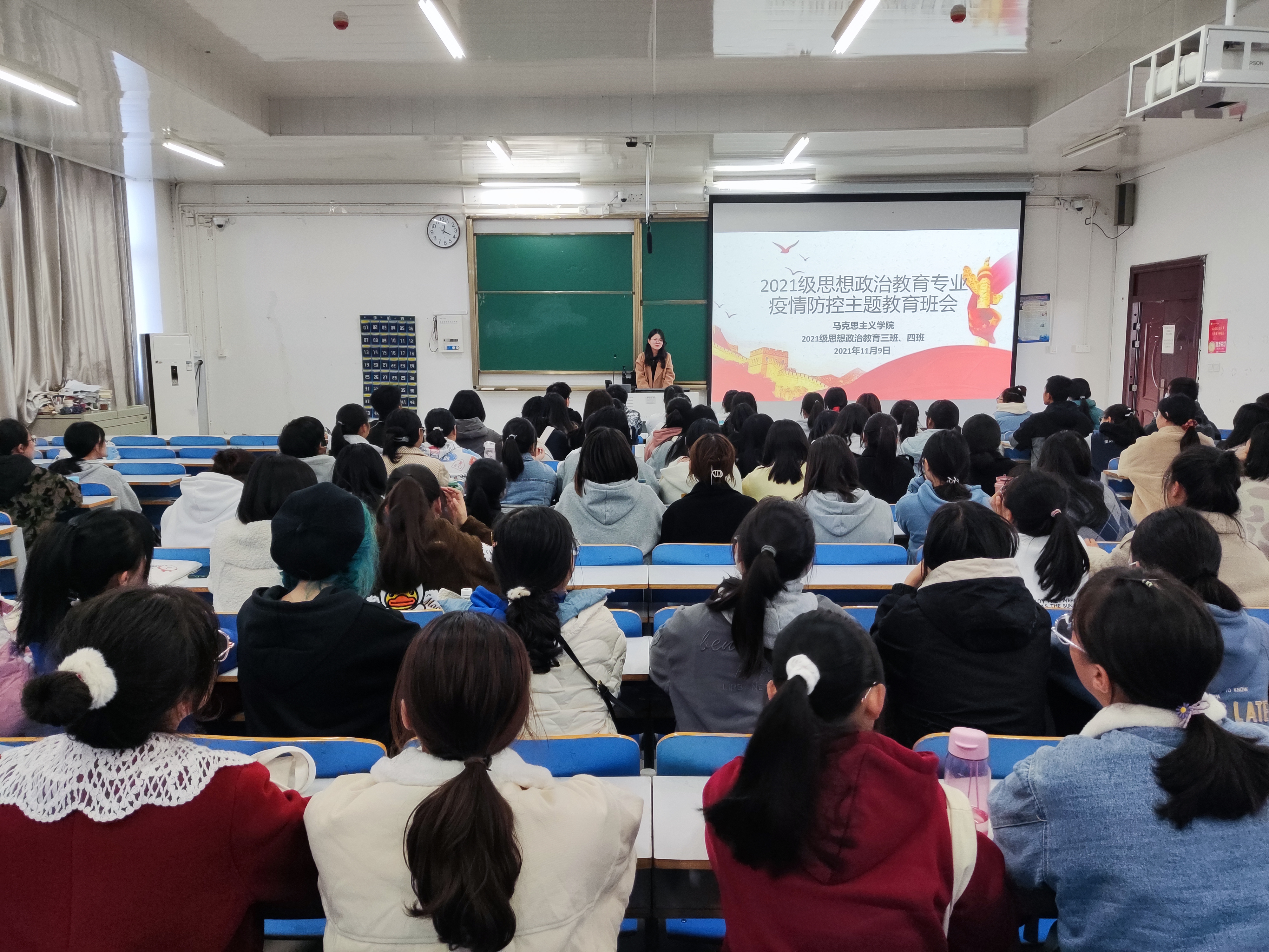 根据省防控指挥部最新下发的疫情防控工作的文件精神和永利集团官网党委副书记黄煌对疫情防控工作的安排部署,11月9日下午,永利集团官网2021级思想政治教育三班、四班在社科楼514教室组织召开疫情防控主题教育班会。班主任高小佳以及永利集团官网2021级思想政治教育三班、四班全体成员共同参加,班会由班主任高小佳主持。