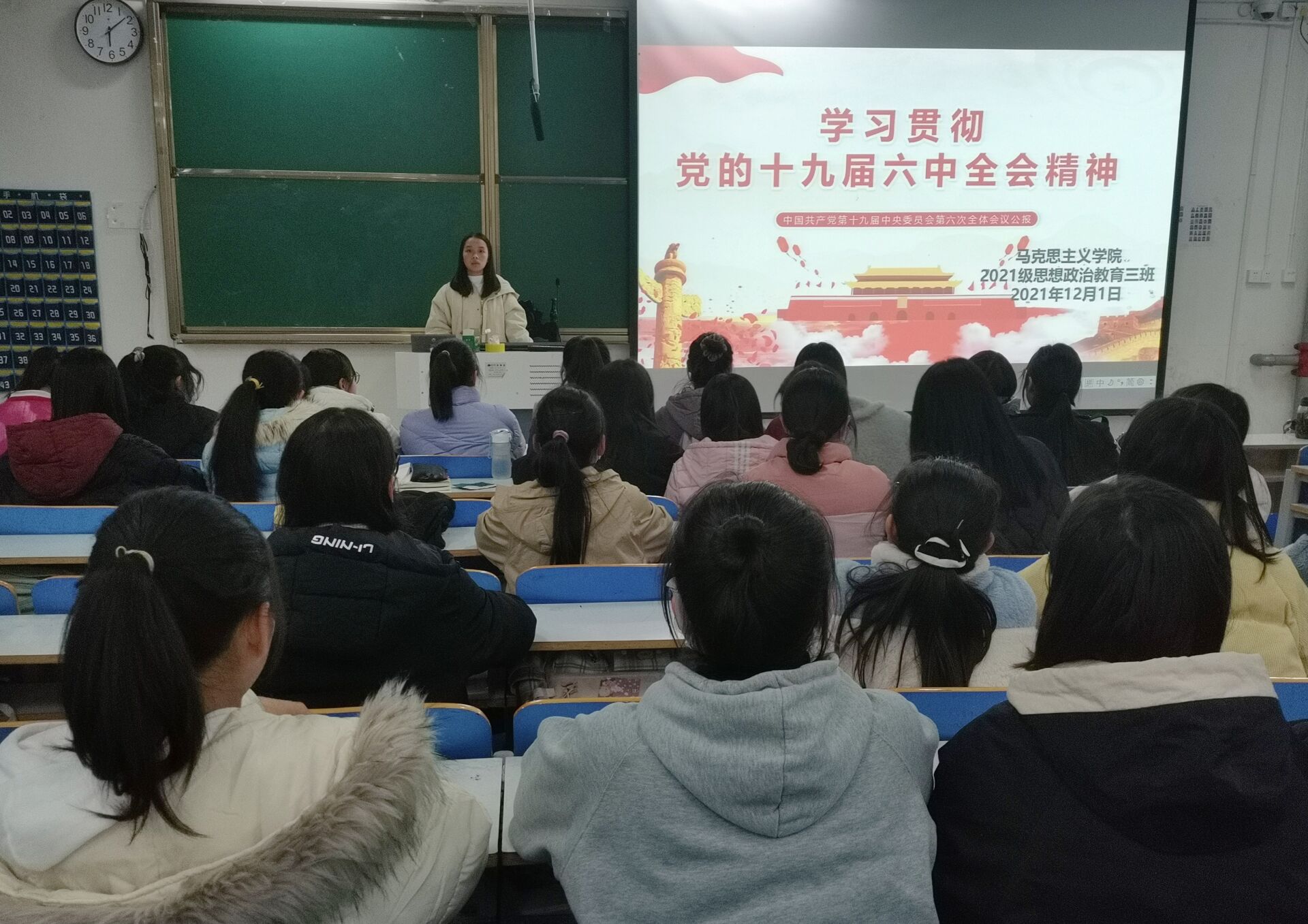 12月1日下午,永利集团官网2021级思想政治教育三班在社科楼516召开学习党的十九届六中全会精神主题班会。2021级思想政治教育三班全体成员参加本次班会。班会由副班长王岚霄主持。