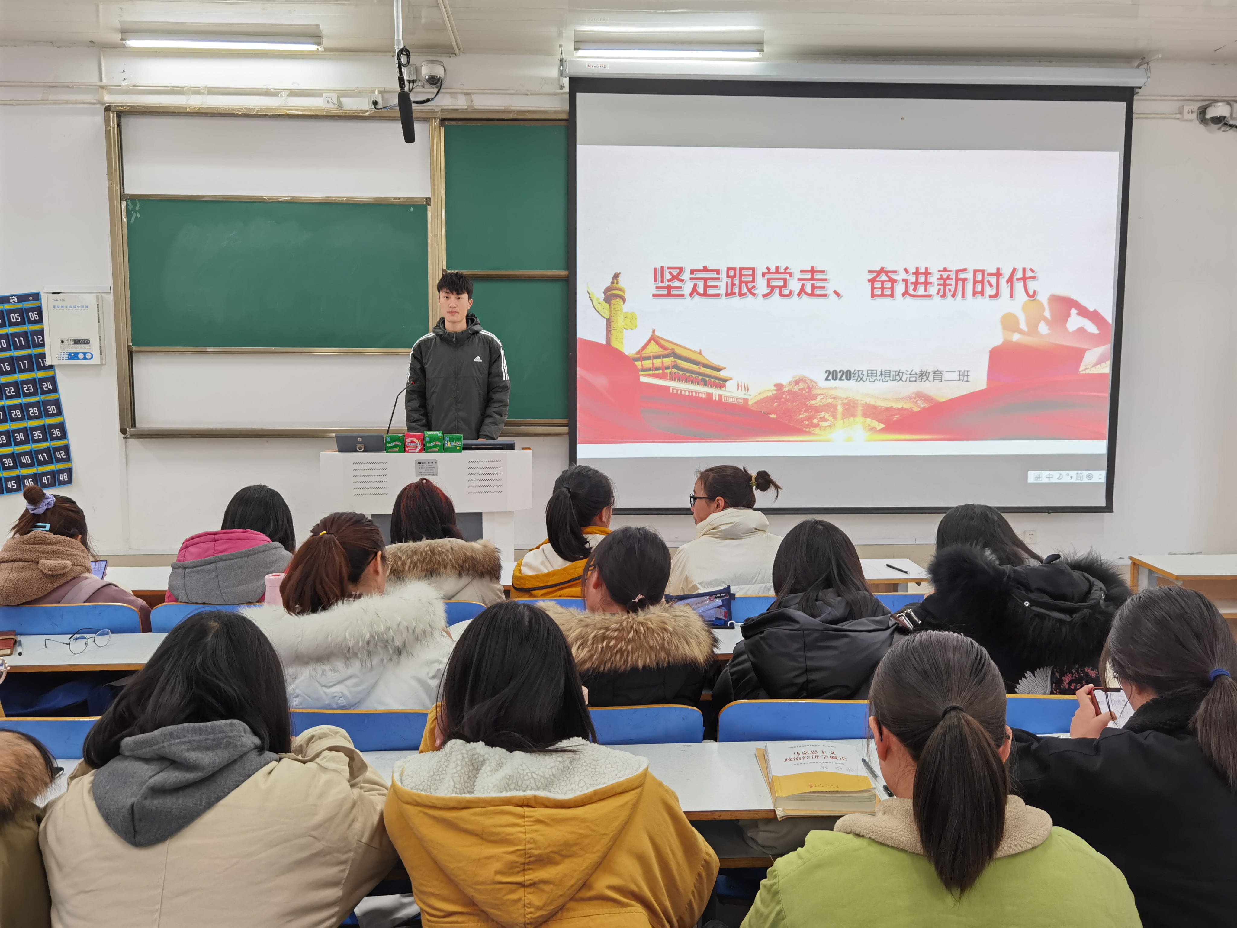 为深入贯彻学习全国学联二十七大会议精神,继承和发扬中国青年运动的光荣传统。11月26日上午,永利集团官网2020级思想政治教育二班在社科楼514教室召开学习全国学联二十七大会议精神“坚定跟党走,奋进新时代”主题班会。2020级思想政治教育二班全体学生共同参与本次班会。班会由陈宇航主持。