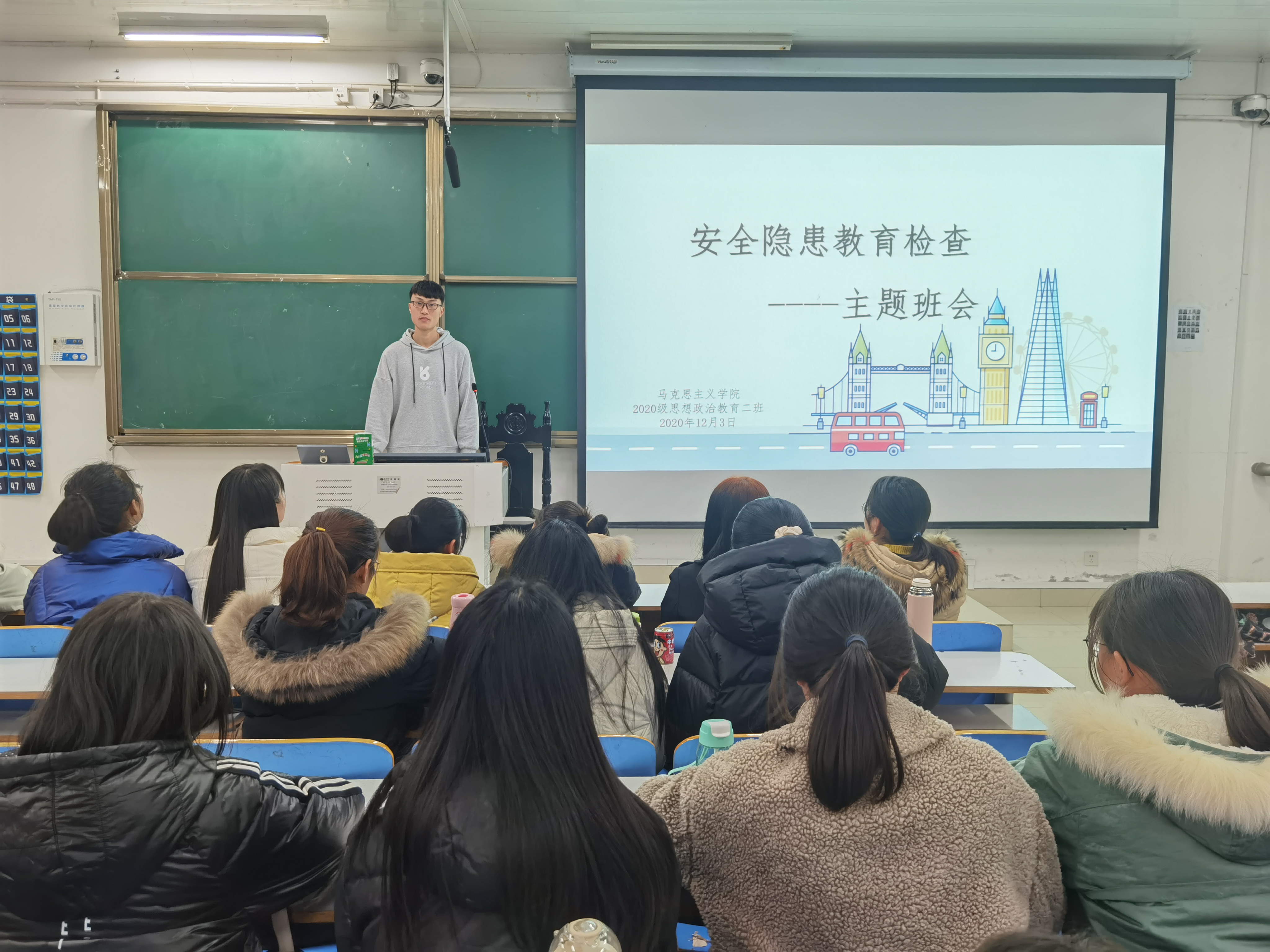 12月3日下午,永利集团官网2020级思想政治教育二班在社科楼516教室召开“安全隐患教育检查”主题班会。2020级思想政治教育二班全体学生共同参与本次班会。班会由陈宇航主持。