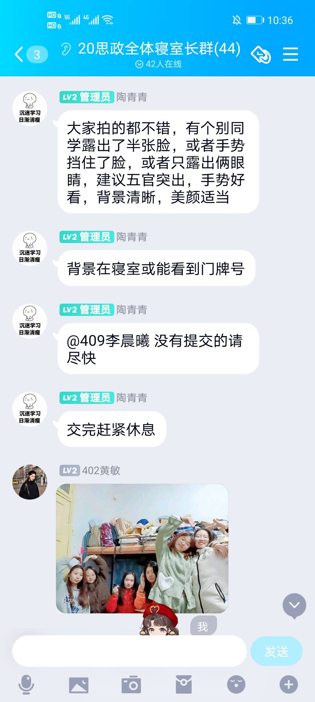 为了解我班同学住宿情况,督促同学们进一步树牢安全意识,12月14日与17日晚,永利集团官网2020级思想政治教育二班班主任陶青青通过线上云查寝的方式对我班同学住宿情况展开深入检查。