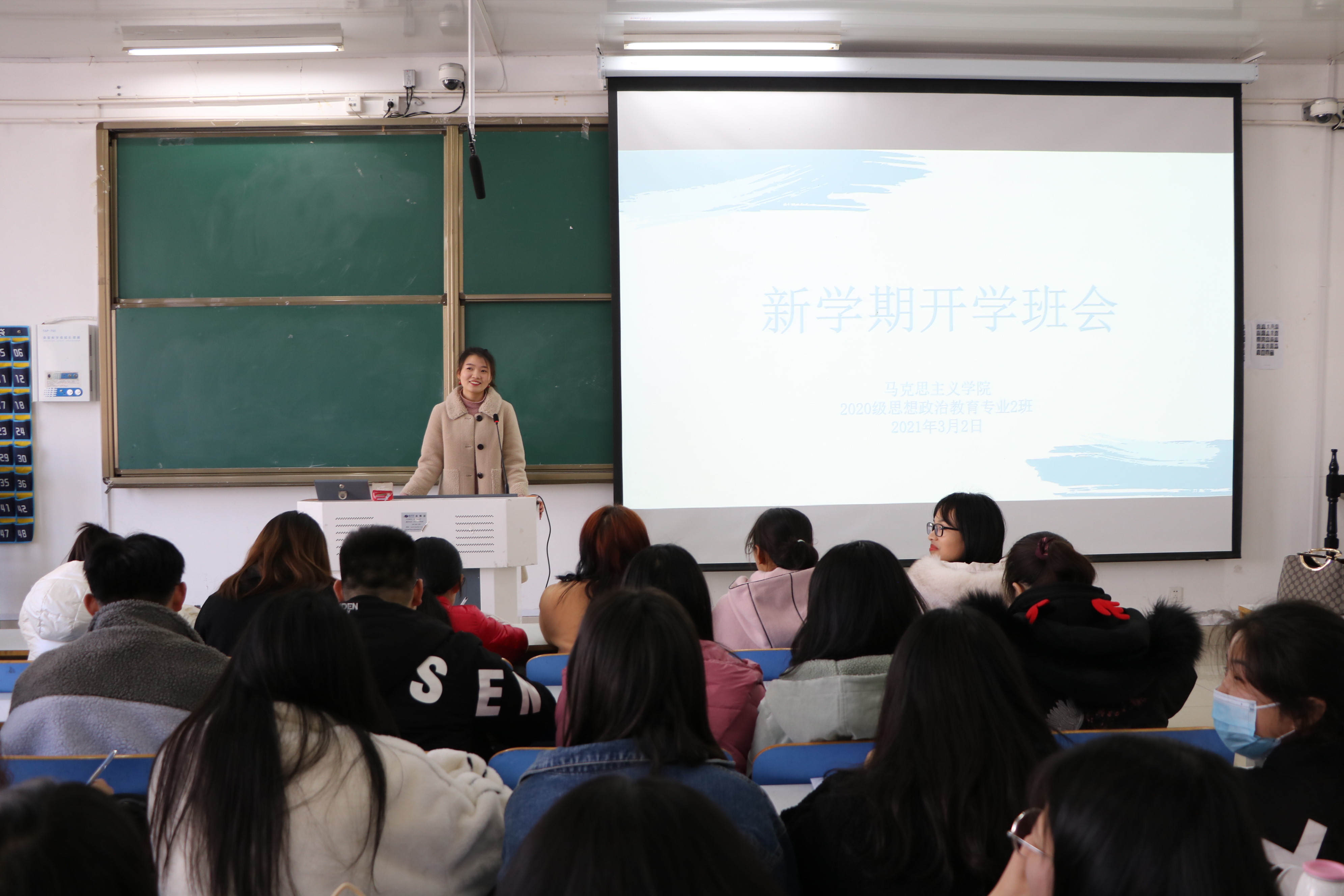 3月2日,永利集团官网2020级思想政治教育二班、定向二班新学期开学班会在社科楼516教室顺利召开。班主任陶青青、二班全体学生及本学期转入我班的8名新同学共同参与本次班会。会议由陶青青主持。