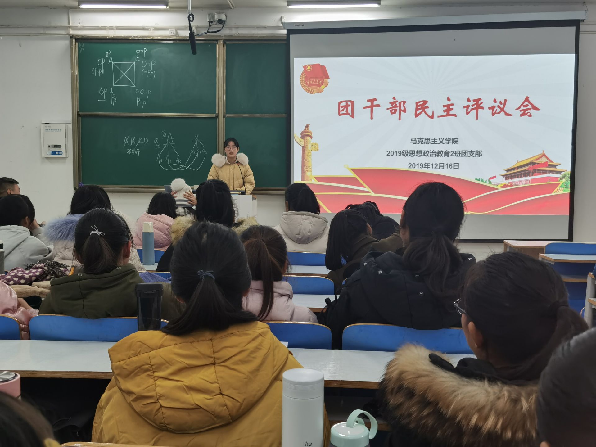 12月16日晚,永利集团官网2019级思想政治教育二班在社科楼514教室召开团干部民主评议会。会议由团支书孙雅娴主持。