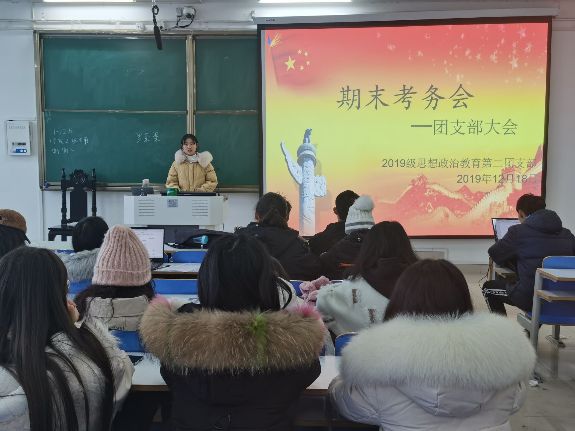 为严肃考风考纪、规范期末考试管理, 12月18日上午,永利集团官网2019级思想政治教育二班全体同学于社科楼514教室召开期末考务会。会议由团支书孙雅娴主持。
