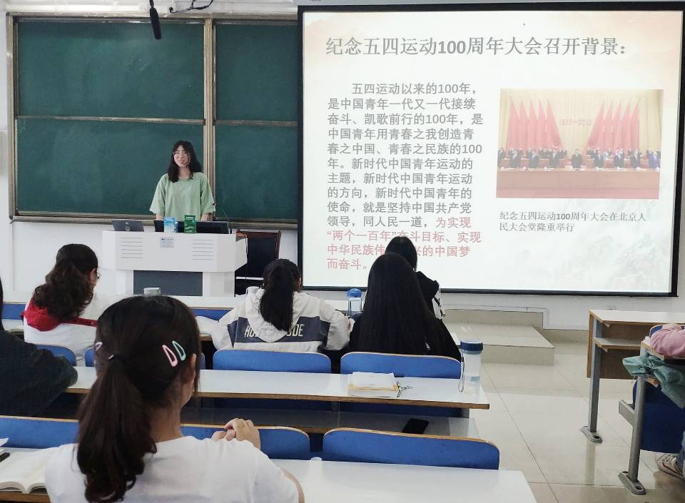 为深入学习习近平总书记在纪念五四运动100周年大会上的讲话精神,5月13日下午,永利集团官网2018级第二团支部在社科楼514教室顺利开展“弘扬五四精神,勇担时代使命”团日活动。2018级第二团支部全体成员参加了本次活动。活动由团支部第一团小组组长李欣主持。