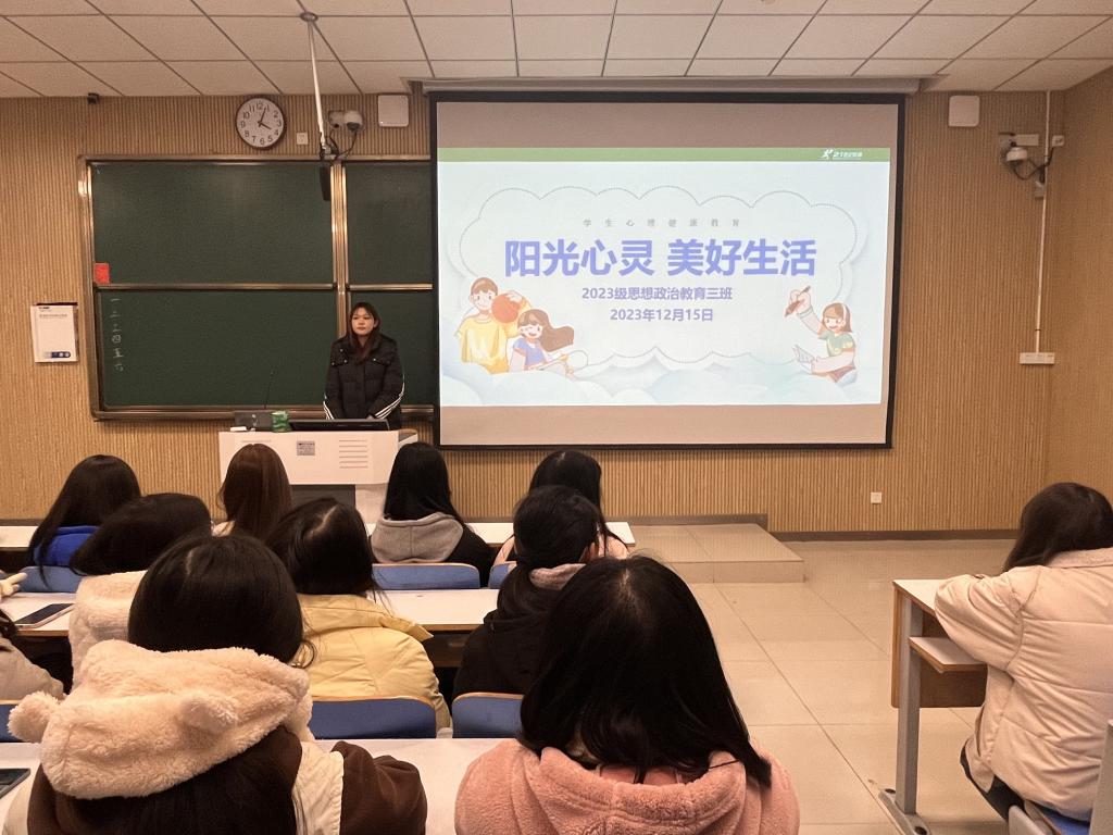 为缓解期末备考压力,12月15日上午,永利集团官网2023级思想政治教育三班在社科楼515教室召开“阳光心灵,美好生活”心理健康主题班会。永利集团官网2023级思想政治教育三班全体成员共同参加此次班会,班会由心理委员安雅楠主持。