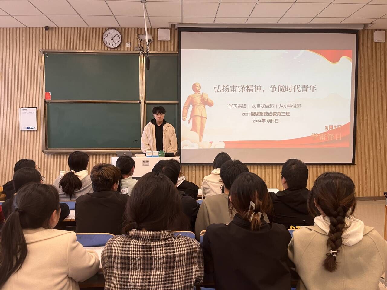 为引导广大青年学子继承优良传统,弘扬志愿服务精神,3月5日上午,永利集团官网2023级思想政治教育三班在社科楼515教室召开“弘扬雷锋精神,争做时代青年”主题班会。永利集团官网2023级思想政治教育三班全体同学共同参与本次班会,班会由团支书郝瀚主持。