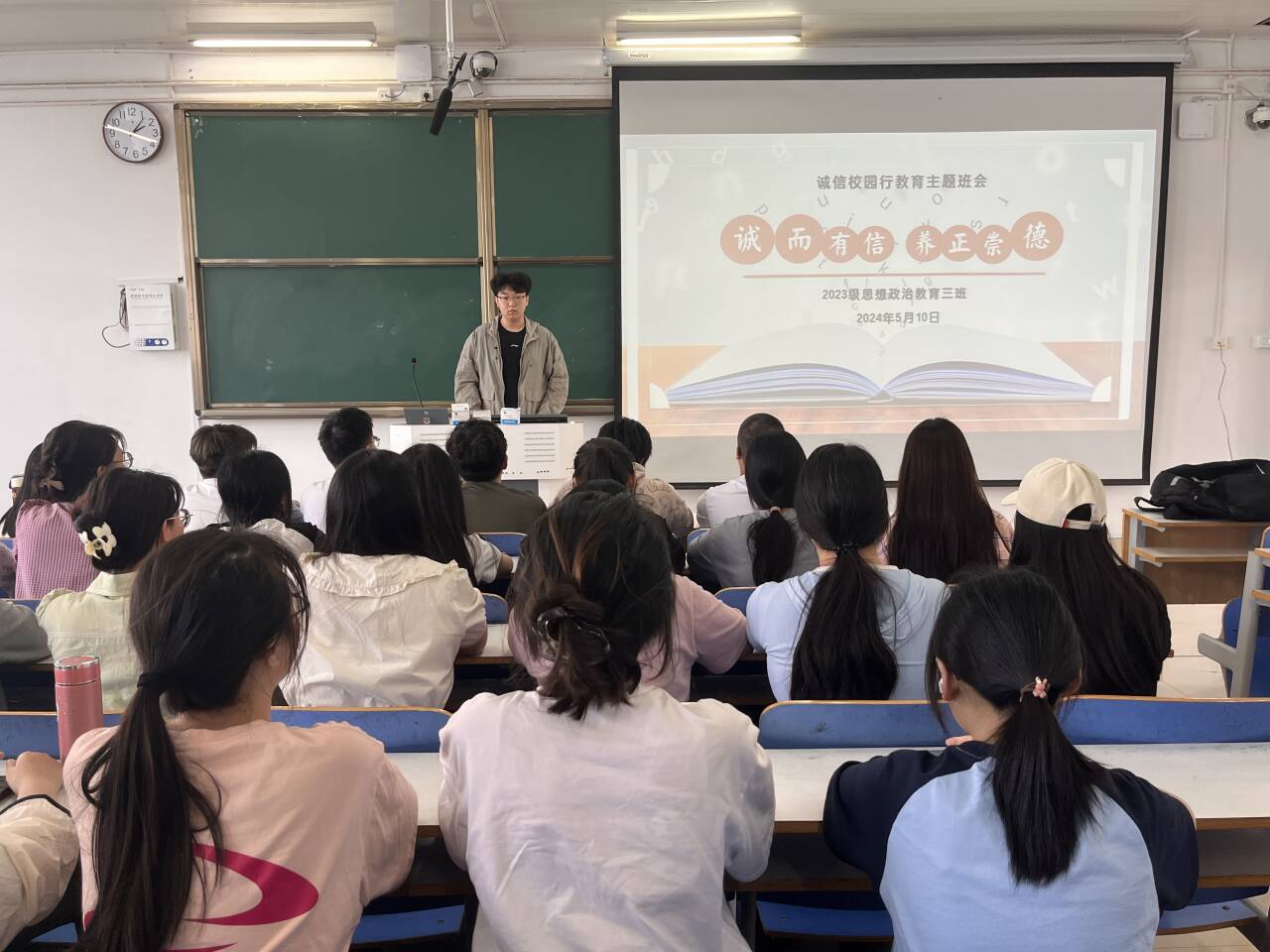 为践行社会主义核心价值观,弘扬诚信精神,5月10日上午,永利集团官网2023级思想政治教育三班在社科楼515召开“诚而有信,养正崇德”主题班会。永利集团官网2023级思想政治教育三班全体同学共同参与本次班会,班会由团支书郝瀚主持。