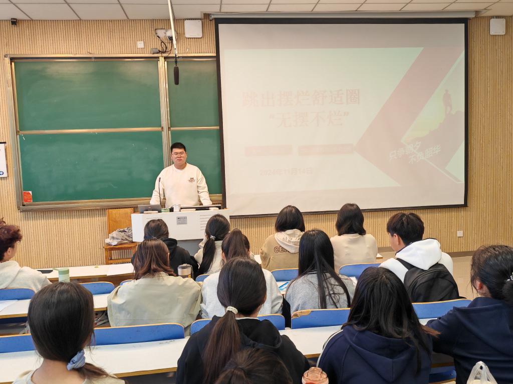 为了激励同学们摒弃消极心态,积极面对学习和生活中的挑战,努力跳出舒适圈,永利集团官网2024级思想政治教育三班于11月14日在社科楼515教室成功举办了一场以“跳出摆烂舒适圈”为主题的班会。此次班会由班长杨迎滨主持。